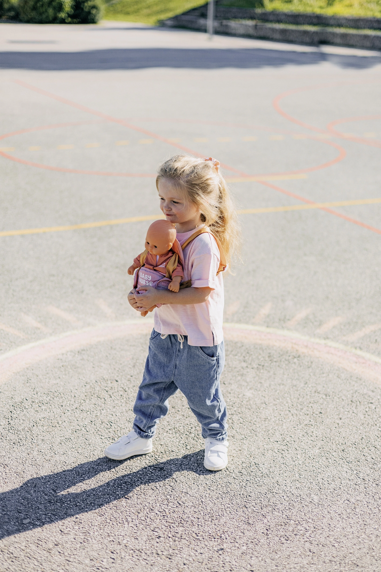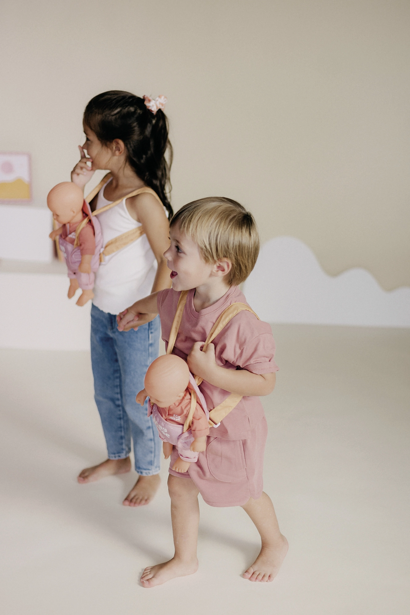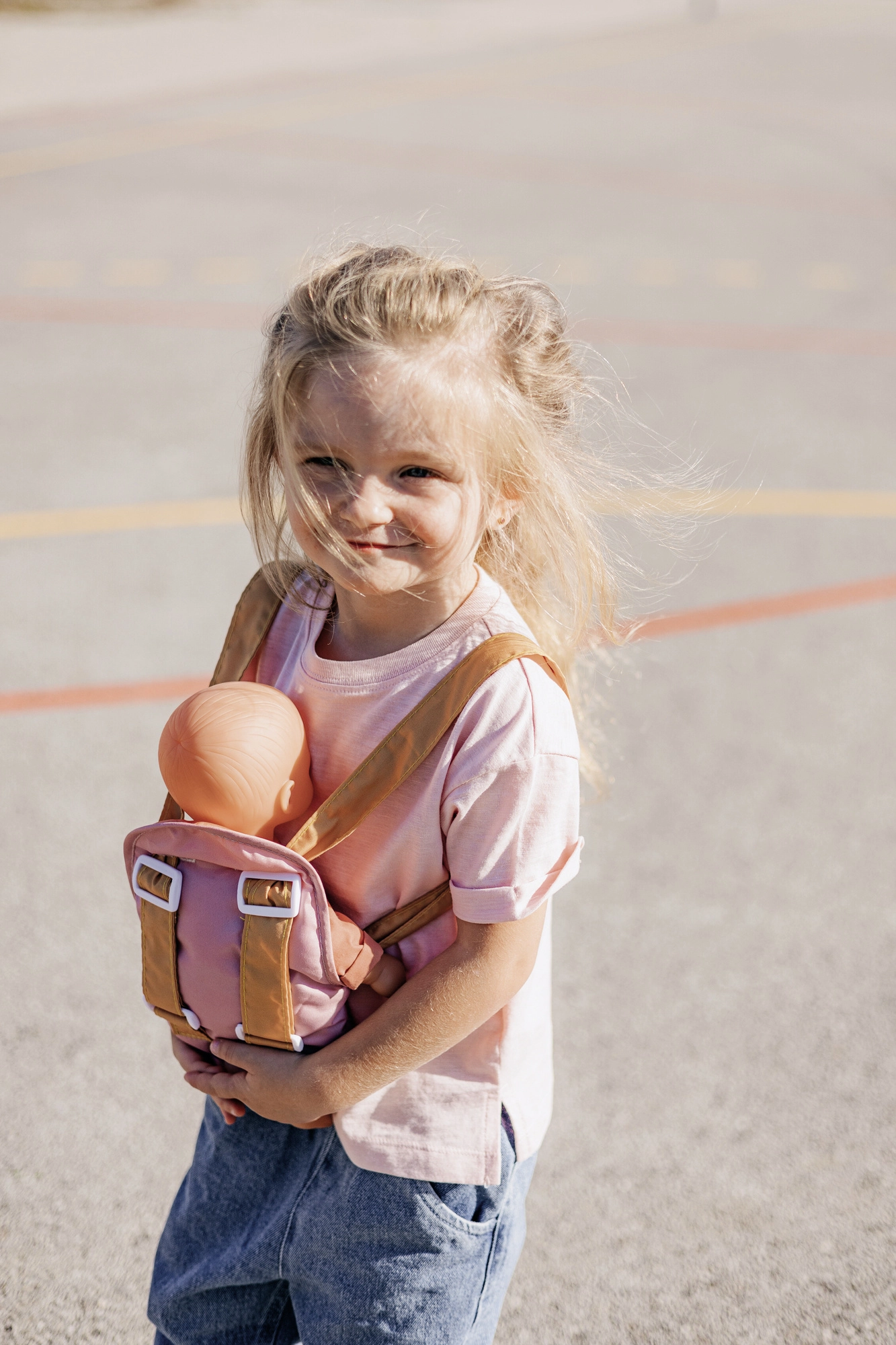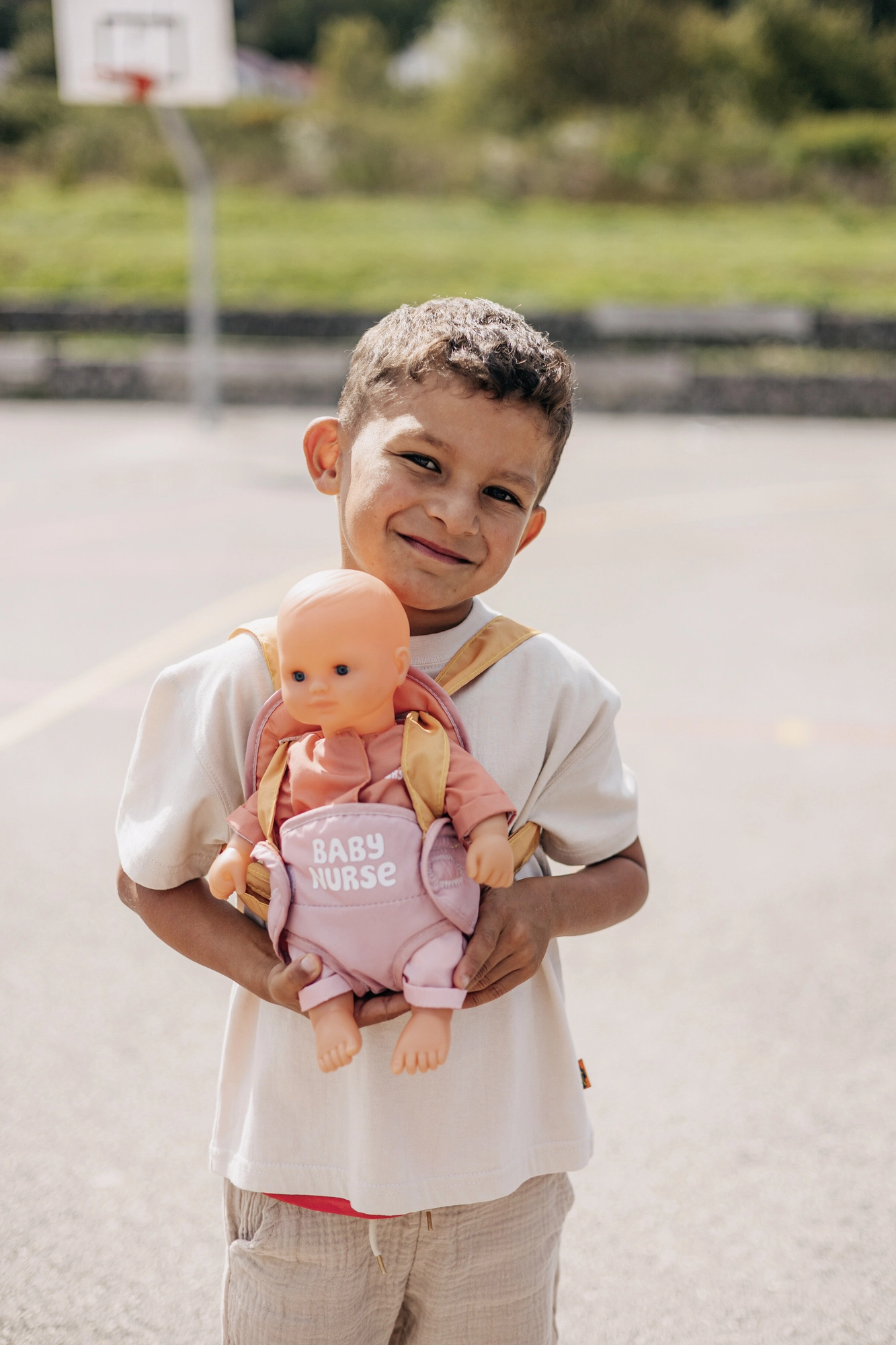 Ο μάρσιπος προσαρμόζεται εύκολα στη σωματοδομή του παιδιού χάρη στους ρυθμιζόμενους ιμάντες. Ο παστέλ συνδυασμός ροζ και ώχρας αποπνέει απαλότητα και μοντέρνο στυλ, συμπληρώνοντας τέλεια τον εξοπλισμό BABY NURSE για κούκλες.