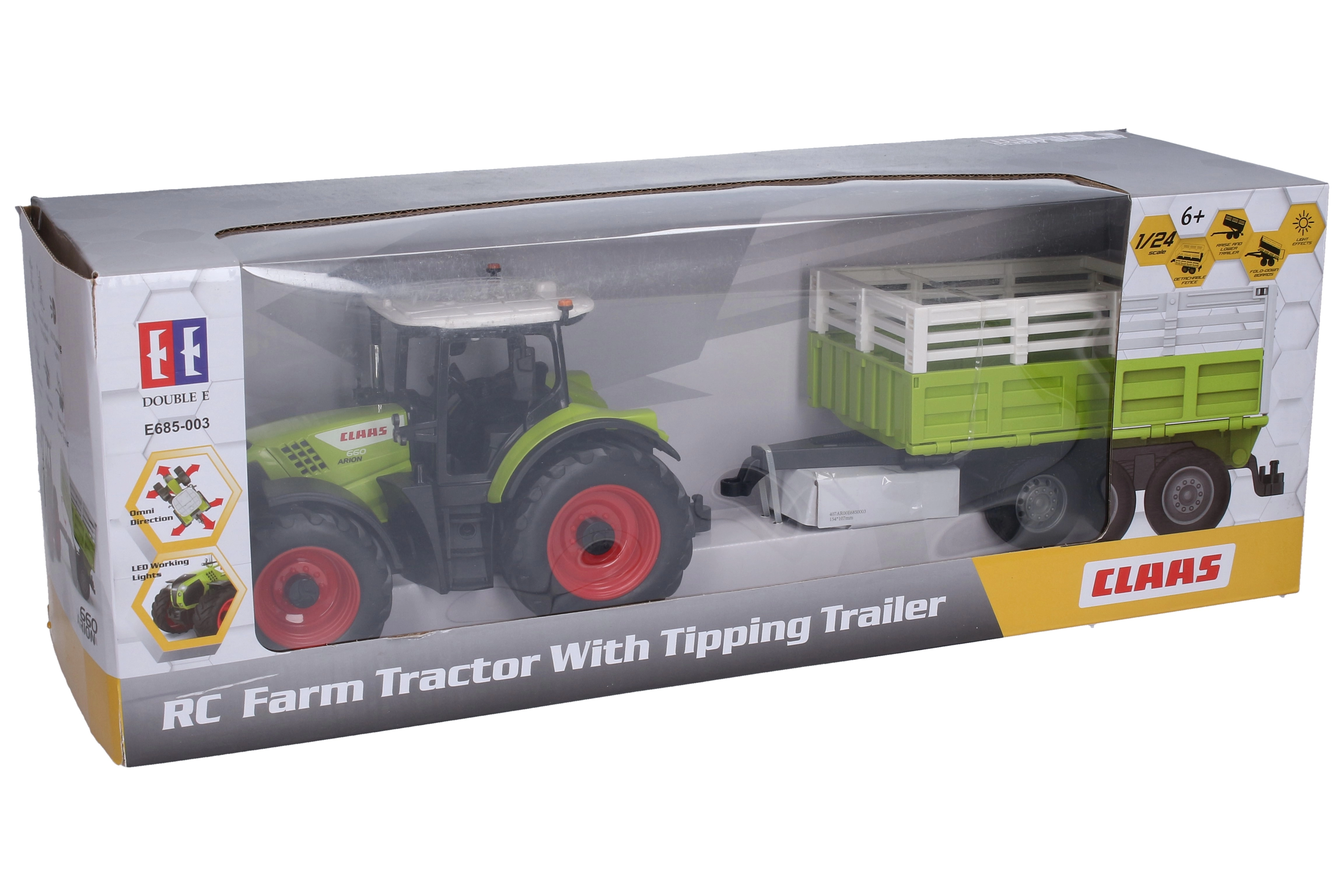 Το RC τρακτέρ, εμπνευσμένο από τη μάρκα CLAAS, προσφέρει στα παιδιά αυθεντική εμπειρία αγροτικών εργασιών. Χάρη στη συμπεριλαμβανόμενη ρυμούλκα, μπορείτε να μεταφέρετε κάθε είδους φορτία και να καλλιεργήσετε τη φαντασία στο παιχνίδι στο σπίτι ή έξω. Ο απλός τηλεχειρισμός εξασφαλίζει ομαλή κίνηση και απόλαυση στην οδήγηση.