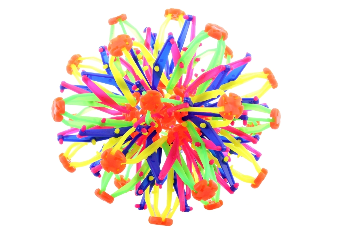 Αυτή η πολύχρωμη αναδιπλούμενη μπάλα από ελαφρύ πλαστικό γοητεύει παιδιά και ενήλικες. Χάρη στον έξυπνο σχεδιασμό της ανοίγει και κλείνει εύκολα, καθιστώντας την ένα εξαιρετικό αντιστρες παιχνίδι και εργαλείο για ανάπτυξη κινητικών δεξιοτήτων και χωρικής αντίληψης. Τα λεία τελειώματα των ράβδων και οι ομαλοί σύνδεσμοι εξασφαλίζουν ασφαλή και διασκεδαστικό χειρισμό.