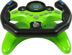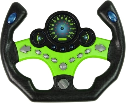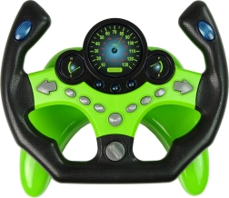 Διαδραστικό τιμόνι για παιδιά με φωτεινά εφέ, ρεαλιστικούς ήχους και σετ κλειδιών με τηλεχειριστήριο προσφέρει διασκεδαστική προσομοίωση οδήγησης. Τα παιδιά εξασκούν την οφθαλμοχειρική συντονιστικότητα, αναπτύσσουν δημιουργικότητα και γνωρίζουν τις βασικές λειτουργίες του αυτοκινήτου. Πράσινο–μαύρο design, εργονομικές λαβές και βεντούζες για σταθερή στερέωση στο τραπέζι εξασφαλίζουν άνετο παιχνίδι.