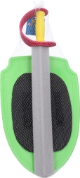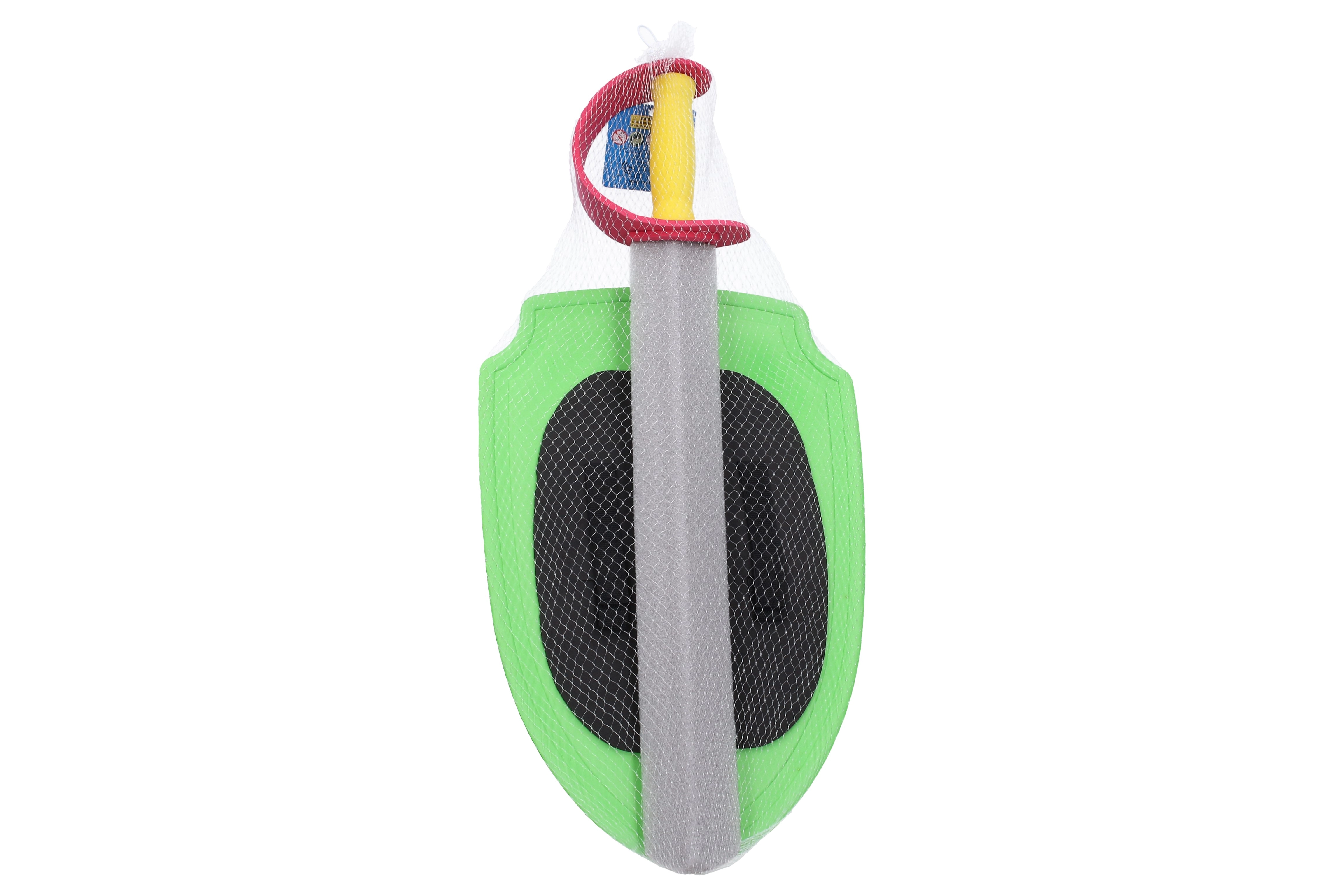 Διασκεδαστικό σετ για μικρούς ιππότες: αφρώδες σπαθί και ασπίδα σε πράσινο χρώμα για ασφαλείς μονομαχίες και παιχνίδια μεταμφίεσης. Ελαφρύ υλικό, ασφαλές παιχνίδι και ιδανικό μέγεθος για παιδιά προσφέρουν άφθονη δράση στο σπίτι και έξω.
