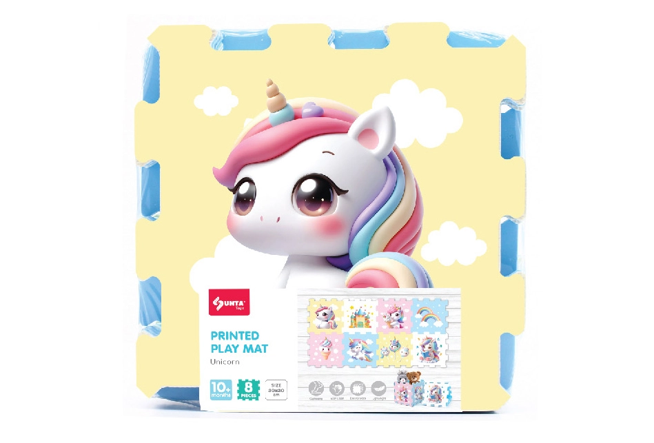 Ζωντανέψτε το παιδικό δωμάτιο με ένα χαρούμενο και ασφαλές σετ από μαλακά αφρώδη μπλοκ με θέμα μονόκερο. Σετ 8 τεμαχίων διαστάσεων 30 × 30 × 1 εκ., ιδανικό για παιχνίδι, συναρμολόγηση ή ως υπόστρωμα. Ελαφριά, μαλακά και εύκολα στο καθάρισμα κομμάτια που προστατεύουν από το κρύο και απορροφούν τους κραδασμούς.
