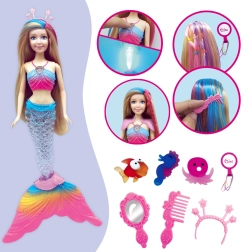 Στη συσκευασία περιλαμβάνεται ένα πλούσιο σετ αξεσουάρ – βούρτσα, χτένα, καθρεφτάκι και κορόνες – που ενισχύουν τη λεπτή κινητικότητα, τη δημιουργικότητα και την ανάπτυξη των αισθήσεων. Η κούκλα είναι εξαιρετική επιλογή για παιδιά που αγαπούν τα παραμύθια, τα χρώματα και την μαγική ατμόσφαιρα.