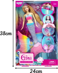 Η γοργόνα WOOPIE Gina φέρνει στα παιδιά έναν παραμυθένιο κόσμο γεμάτο φώτα, μουσική και φαντασία. Η ουράνιοτοξένια κινητή ουρά με ροζ πτερύγιο, το πολύχρωμο τοπ και τα μακριά ξανθά μαλλιά προσκαλούν σε χτένισμα, πλεξούδες και styling. Τα ενσωματωμένα φωτεινά και μουσικά εφέ ενισχύουν την εμπειρία παιχνιδιού και μεταμορφώνουν το δωμάτιο σε ένα υποθαλάσσιο βασίλειο.
