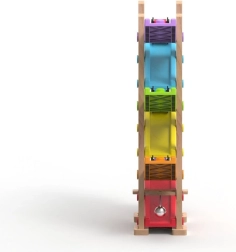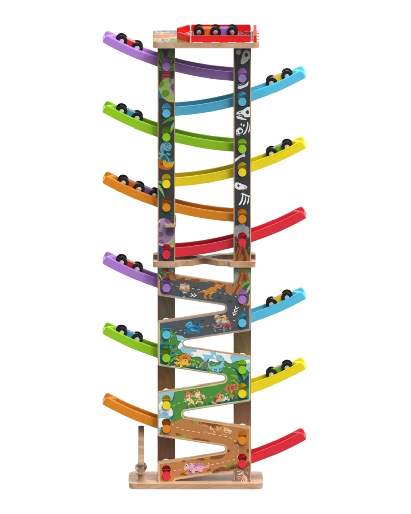 Αυτή η μεγάλη ξύλινη αγωνιστική πίστα φέρνει στο παιδικό δωμάτιο περισσότερη ταχύτητα και διασκέδαση. Χάρη στις έξι πολύχρωμες ράμπες, τα παιδιά παρακολουθούν την ομαλή πορεία των αυτοκινήτων και ανακαλύπτουν τις αρχές της βαρύτητας και της αιτίας–αποτελέσματος. Μπορείτε να τη χρησιμοποιήσετε πλήρως αυτόνομα ή να τη συνδέσετε ως επέκταση στην υπάρχουσα πίστα σας για ακόμη πιο μακριά και δυναμική διαδρομή.