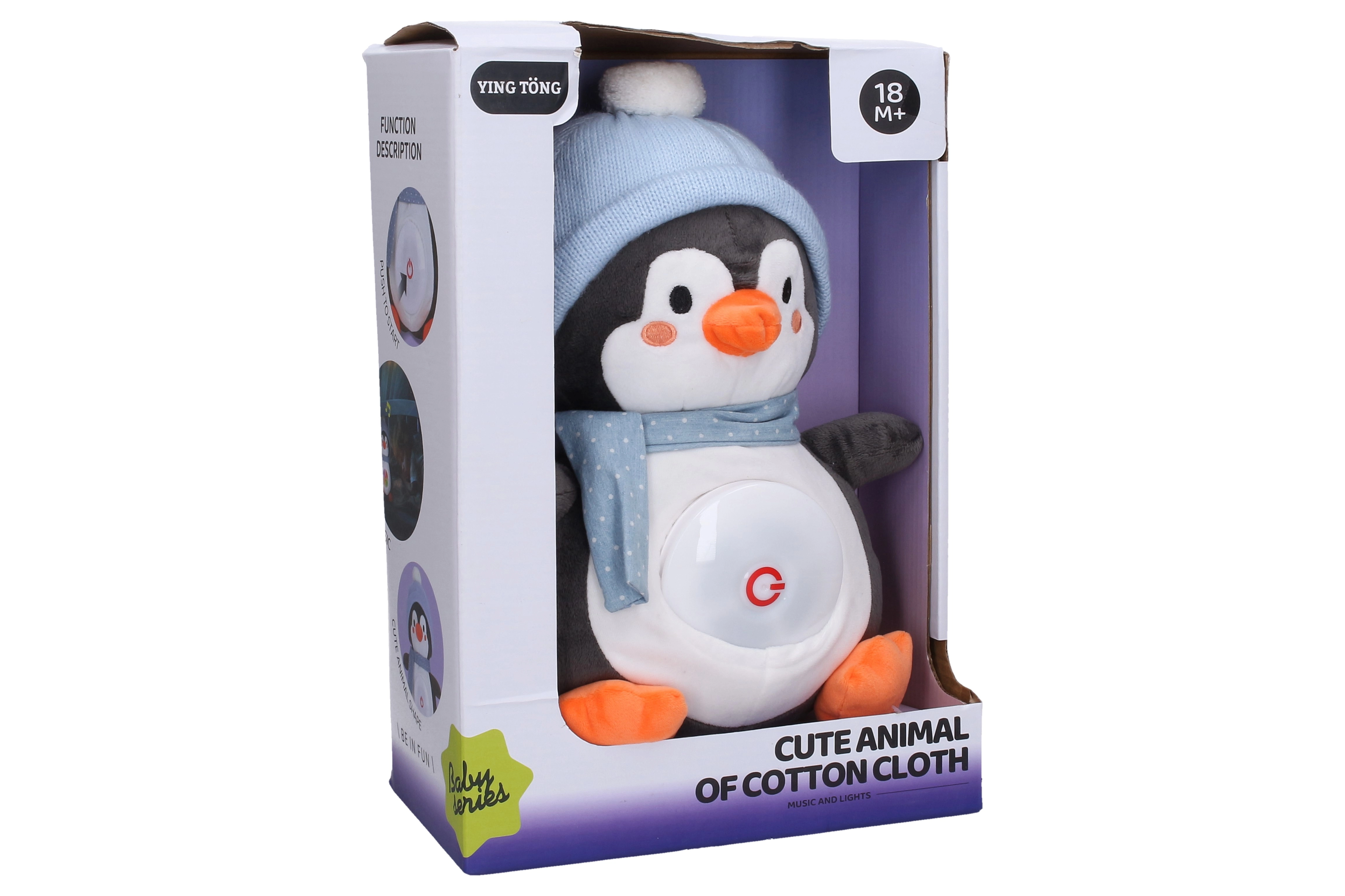 Χαριτωμένο λούτρινο πιγκουινάκι για τον ύπνο που βοηθά τα παιδιά να αποκοιμηθούν ήρεμα χάρη στο απαλό φως και τις 5 χαλαρωτικές μελωδίες. Εύκολος χειρισμός μέσω κουμπιού στην κοιλίτσα και πρακτικό On/Off στη αφαιρούμενη κοιλίτσα. Ιδανικό μέγεθος 29 cm για αγκαλιές.