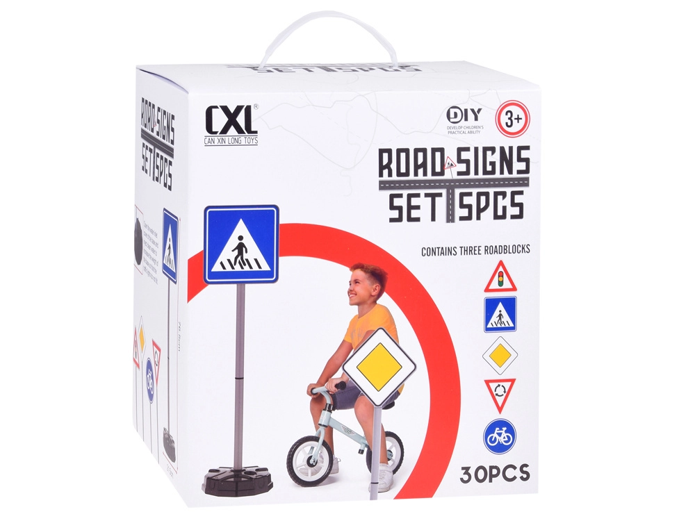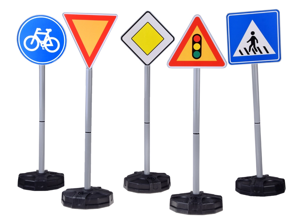 - 5 φιγούρες πινακίδων κυκλοφορίας (φανάρι, διάβαση πεζών, κύρια οδός, κυκλικός κόμβος, ποδηλατόδρομος)