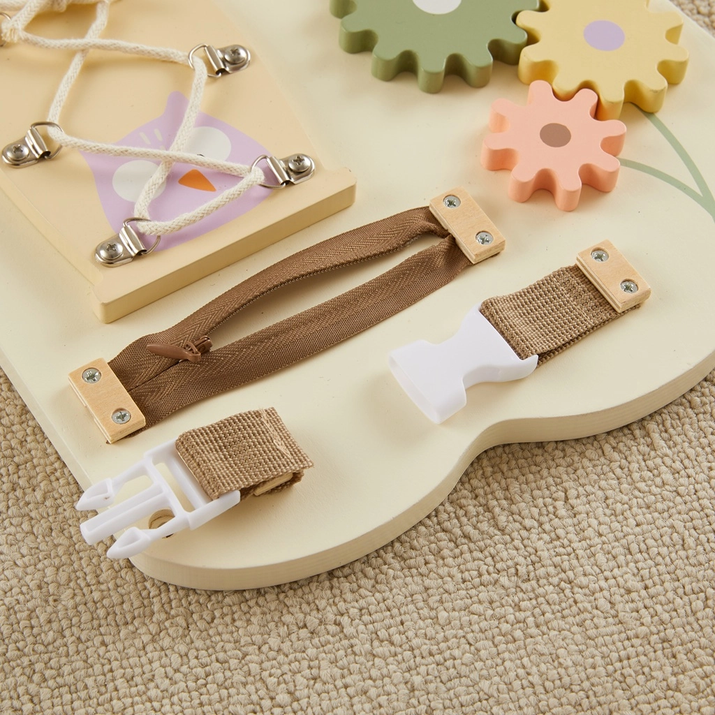 Ο πίνακας έχει σχεδιαστεί για ασφαλή καθημερινή αλληλεπίδραση – λείες άκρες, σταθερή στήριξη στον τοίχο και προσεγμένη διάταξη δραστηριοτήτων. Τα παιδιά καλλιεργούν υπομονή, συγκέντρωση και συντονισμό κινήσεων και αναπτύσσουν φυσικά δεξιότητες σημαντικές για την προσχολική ηλικία.