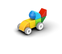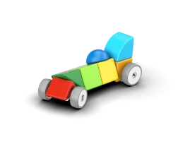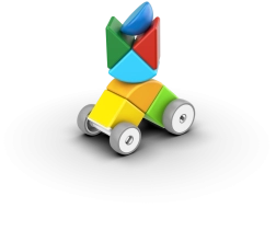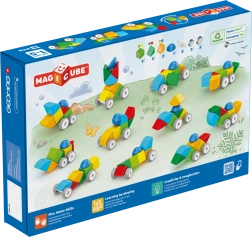 Ειδικά σχεδιασμένα μαγνητικά στοιχεία που ενώνονται εύκολα από διάφορες πλευρές. Έτσι τα παιδιά φτιάχνουν χωρίς κόπο αυτοκινητάκια και άλλα σχήματα, ενισχύοντας τη λεπτή κινητικότητα.