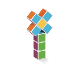 Κάθε πλευρά του κύβου έχει διαφορετικό χρώμα, ενισχύοντας την αναγνώριση χρωμάτων, την ταξινόμηση και τις πρώτες μαθηματικές και γεωμετρικές έννοιες.