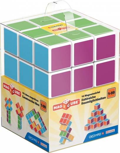 Χτίστε, εξερευνήστε και μάθετε με τους πολύχρωμους μαγνητικούς κύβους Geomag Magicube. Χάρη στη μοναδική κατασκευή τους, οι κύβοι έλκονται από όλες τις πλευρές, προσφέρουν ατελείωτες δυνατότητες κατασκευής και υποστηρίζουν τη λεπτή κινητικότητα, τη χωρική φαντασία και τη λογική σκέψη. Κάθε πλευρά έχει διαφορετικό χρώμα, γεγονός που καθιστά τους κύβους εξαιρετικό εκπαιδευτικό εργαλείο για το σπίτι και το σχολείο. Η συσκευασία περιλαμβάνει 16 μαγνητικούς κύβους κατασκευασμένους στην Ελβετία από ανακυκλωμένο πλαστικό, κατάλληλους από 1 έτους.