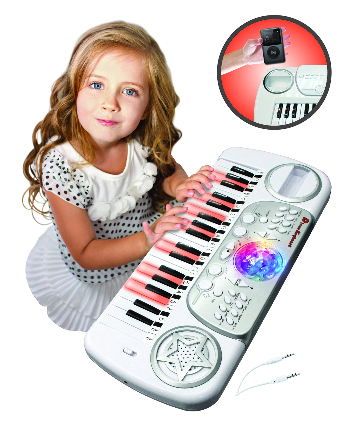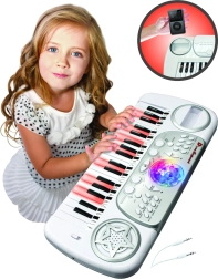 Με 37 πλήκτρα, 8 ενσωματωμένα όργανα και 8 ρυθμούς, τα παιδιά δοκιμάζουν διαφορετικούς ήχους και στυλ. Η ρύθμιση τέμπο και έντασης ενισχύει τη δημιουργικότητα, ενώ η λειτουργία ηχογράφησης με επακόλουθη αναπαραγωγή επιτρέπει να ακούνε τις δικές τους δημιουργίες. Συνδέοντας κινητό ή MP3 player μέσω της υποδοχής μπορούν να αναπαράγουν αγαπημένα τραγούδια και να παίζουν μαζί τους.
