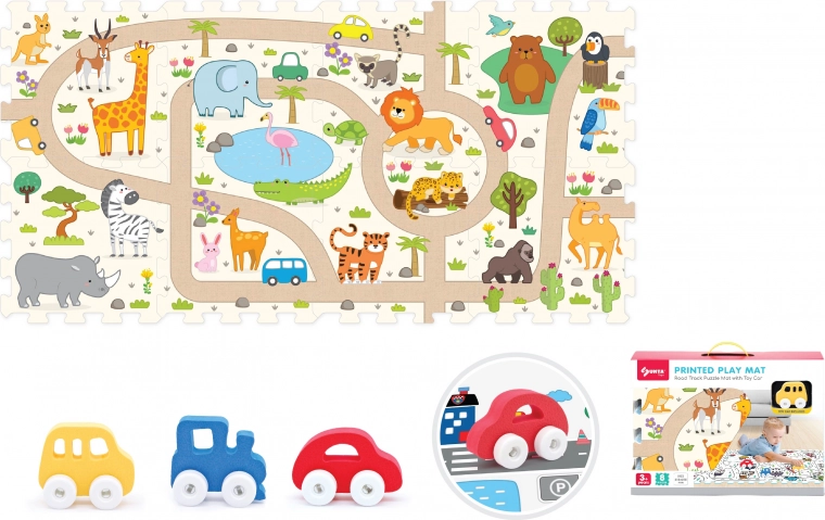 Ανακαλύψτε διασκεδαστικό και ασφαλές παιχνίδι με αυτό το σετ μαλακών τουβλακίων και σαφάρι αυτοκινητακίου. Το σετ περιλαμβάνει 8 μαλακά τουβλάκια διαστάσεων 31,5 × 31,5 × 1 cm και αυτοκινητάκι με ελεύθερα κινούμενους τροχούς, που ενισχύει τη δημιουργικότητα, τη λεπτή κινητικότητα και το ασφαλές παιχνίδι στο σπίτι ή στον παιδικό σταθμό/νηπιαγωγείο.