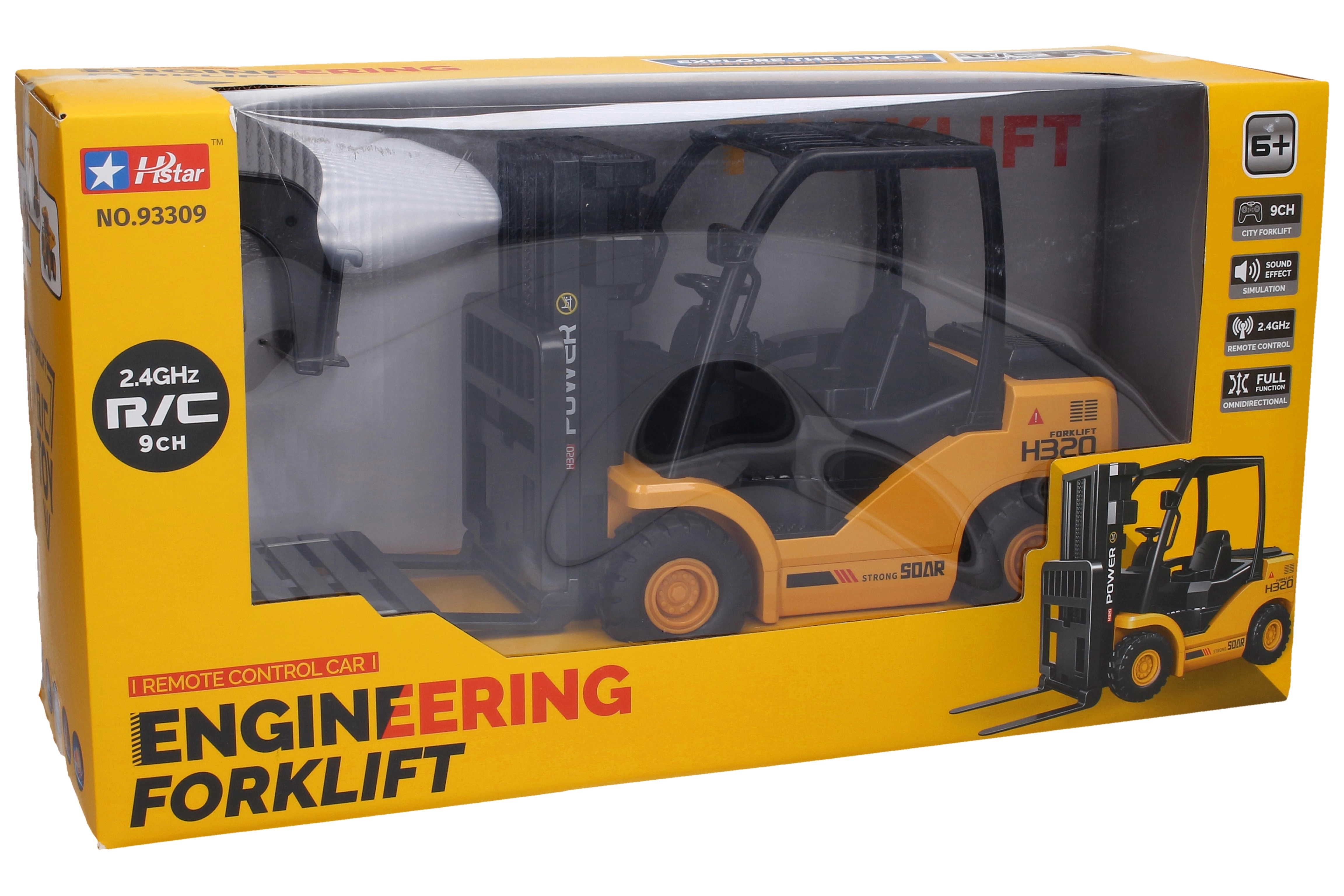 Ρεαλιστικό τηλεκατευθυνόμενο περονοφόρο ανυψωτικό RC μήκους 34 cm που θα ενθουσιάσει μικρούς και μεγάλους οδηγούς. Προσφέρει χειρισμό στη συχνότητα 2,4 GHz, ηχητικά εφέ, ανύψωση και τοποθέτηση της πλατφόρμας φόρτωσης και πλούσια αξεσουάρ στη συσκευασία. Περιλαμβάνει επαναφορτιζόμενο πακέτο μπαταριών 3,7 V και καλώδιο USB.