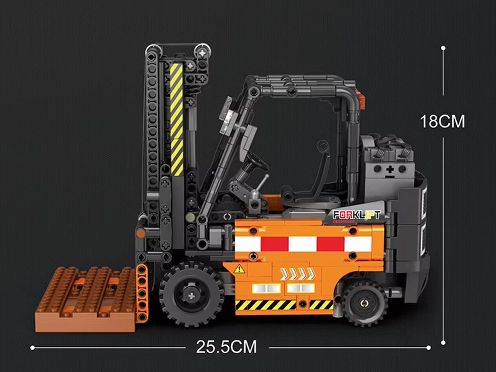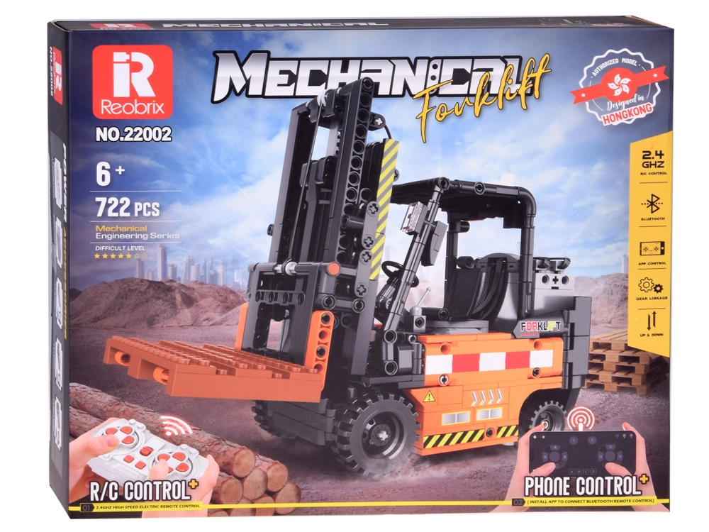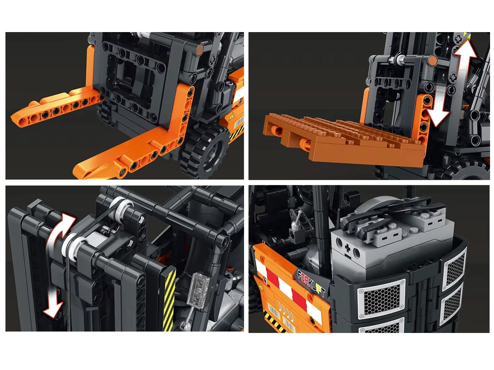 Η συναρμολογούμενη κατασκευή RC περονοφόρου ανυψωτήρα είναι εξαιρετική επιλογή για μικρούς και μεγάλους φίλους της τεχνολογίας και της μηχανικής. Από 722 ακριβή κομμάτια δημιουργείτε ένα σταθερό μοντέλο με ρεαλιστικές λειτουργίες που μιμούνται την εργασία μιας πραγματικής μηχανής. Χάρη στο τηλεχειριστήριο 2,4G ή την mobile εφαρμογή θα απολαύσετε ομαλή κίνηση, ανύψωση φορτίου και ακριβείς ελιγμούς.