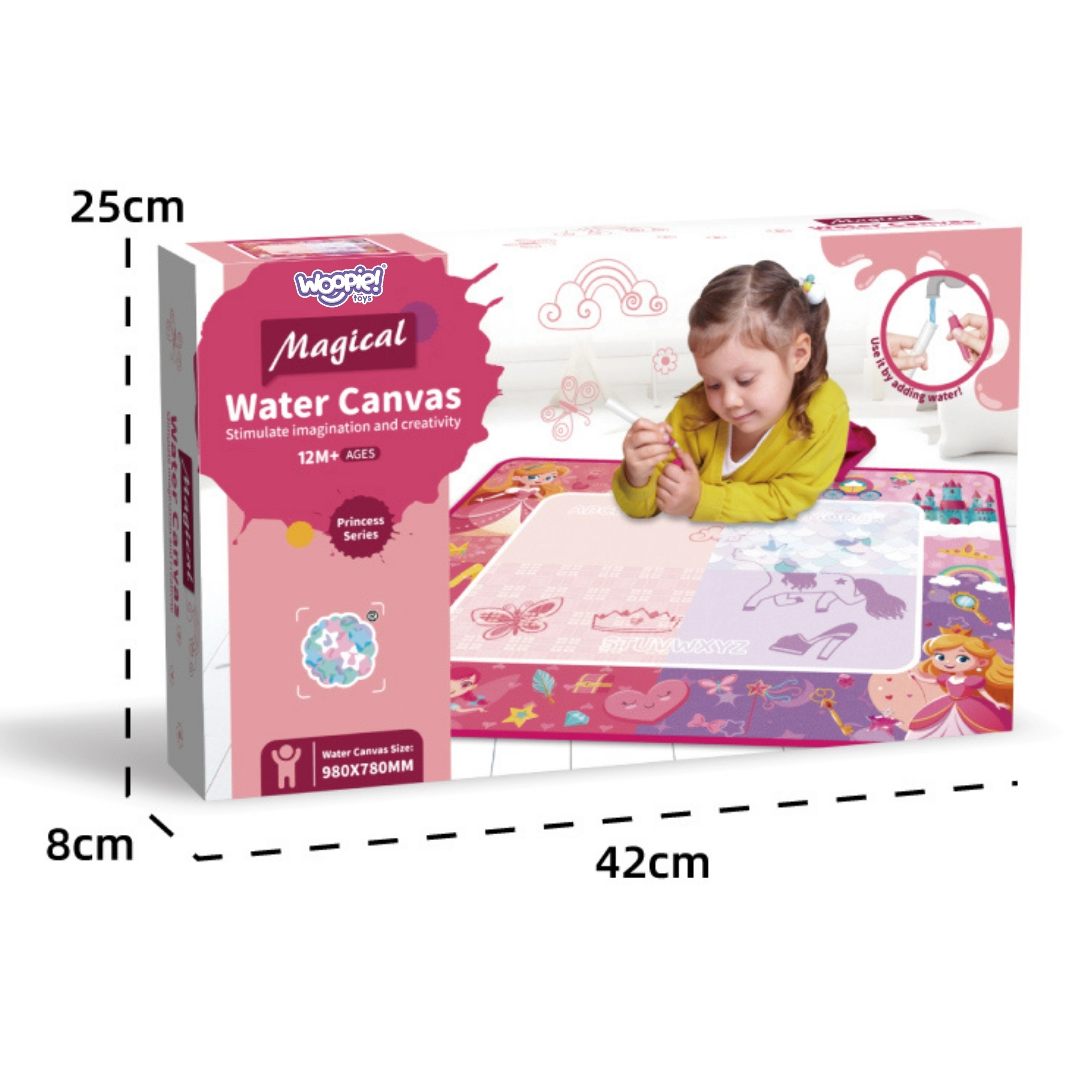 Το υδάτινο χαλάκι WOOPIE είναι ιδανική επιλογή για γονείς που αναζητούν καθαρή και ασφαλή διασκέδαση χωρίς χρώματα και λεκέδες. Αρκεί να γεμίσετε τους υδάτινους μαρκαδόρους και να αρχίσετε να ζωγραφίζετε – τα χρωματιστά μοτίβα εξαφανίζονται μόλις στεγνώσουν, ώστε το χαλάκι να είναι επαναχρησιμοποιήσιμο. Το θέμα με τις πριγκίπισσες ενισχύει τη φαντασία και δημιουργεί ένα εμπνευσμένο περιβάλλον για παιχνιδιάρικη μάθηση.
