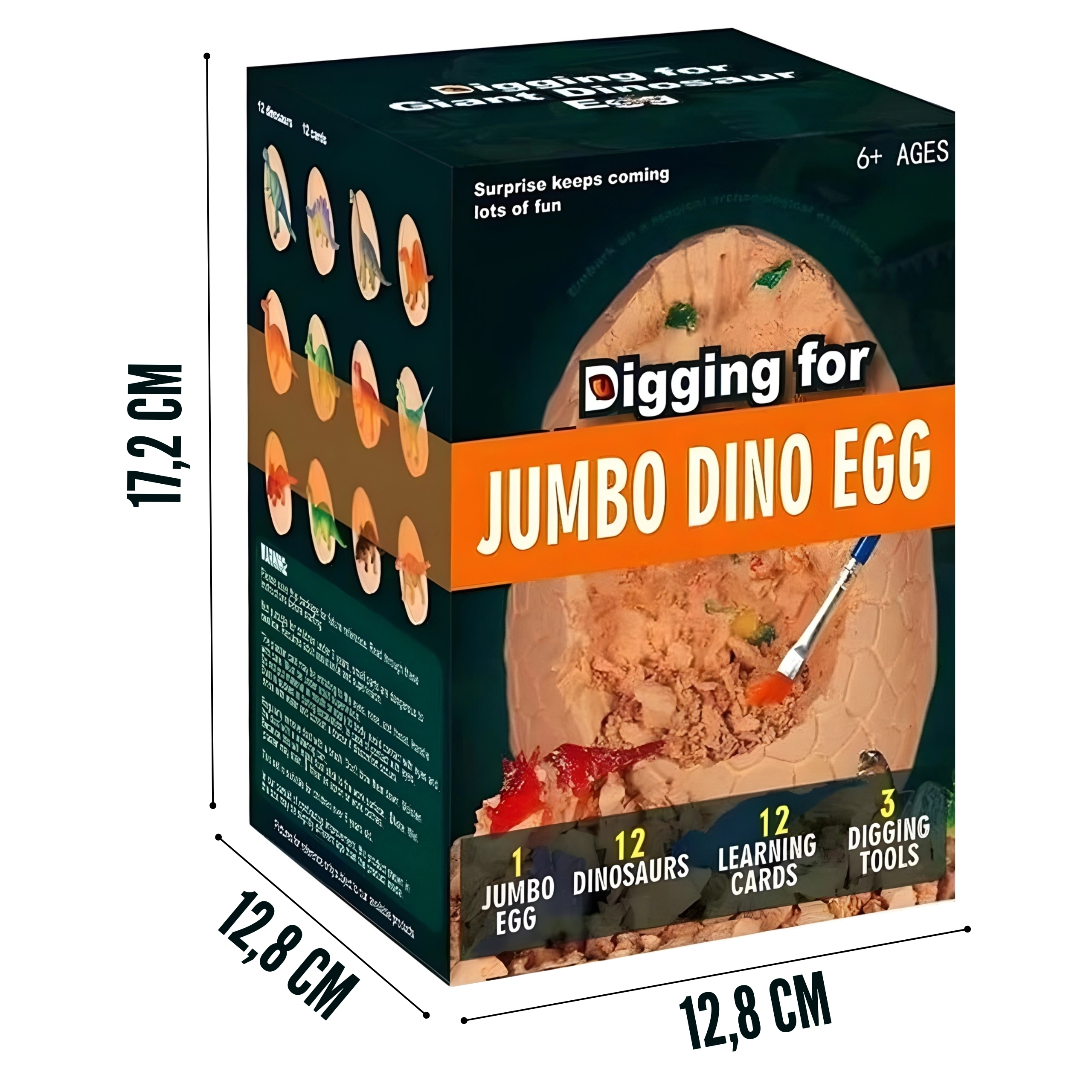 Μέσα στο ρεαλιστικό αυγό σας περιμένουν δώδεκα μικρές φιγούρες δεινοσαύρων. Τα παιδιά τις αποκαλύπτουν σταδιακά και βιώνουν αυθεντική χαρά ανακάλυψης.