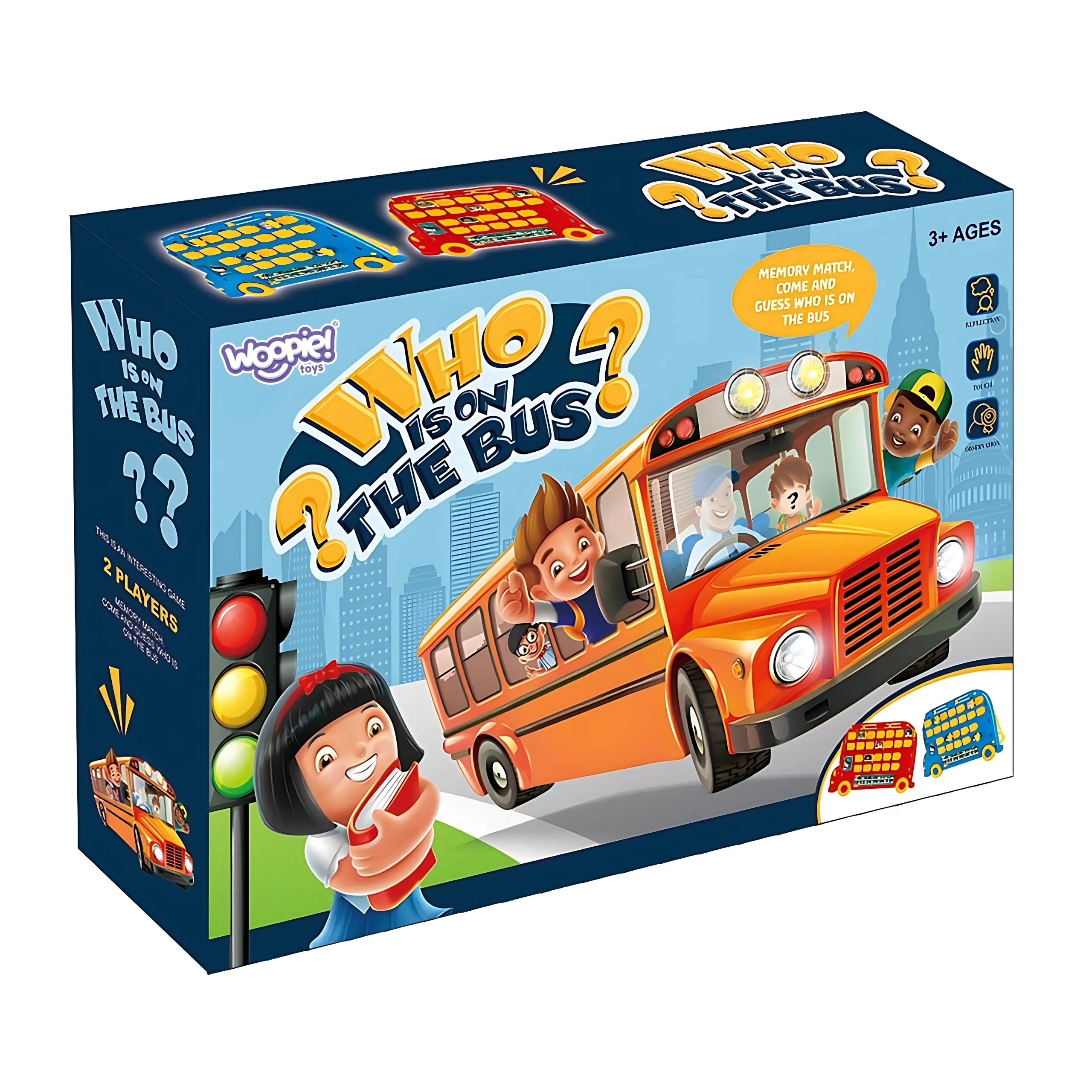Ανακαλύψτε φρέσκια οικογενειακή διασκέδαση με το Woopie Μάντεψε ποιος. Δύο σταθεροί πίνακες παιχνιδιού σε σχήμα λεωφορείου, ευδιάκριτα παραθυράκια και διπλής όψης ένθετες κάρτες (χαρακτήρες και ζώα) κάνουν το παιχνίδι εξαιρετικό εργαλείο για την ανάπτυξη της λογικής, της συγκέντρωσης και των γλωσσικών δεξιοτήτων. Οι απλοί κανόνες είναι κατανοητοί ακόμη και από τους μικρότερους και χάρη στη μηχανική κατασκευή δεν απαιτούνται μπαταρίες.