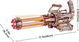 Ετοιμαστείτε για δράση με το 3D ξύλινο μοντέλο του ROKR περιστρεφόμενου πολυβόλου, που συνδυάζει κατασκευή και διασκέδαση σε ένα. Συναρμολογήστε ένα λεπτομερές μηχανικό μοντέλο με έξι περιστρεφόμενες κάννες, ικανό να εκτοξεύει έως και 36 λαστιχάκια χάρη σε έναν αποτελεσματικό μηχανισμό γραναζιών. Απολαύστε γρήγορη αλλά ασφαλή βολή, εύκολη συναρμολόγηση χωρίς κόλλα και ένα μοναδικό συλλεκτικό και διακοσμητικό κομμάτι για τη βιτρίνα σας.