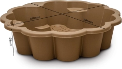 Τα δύο εσωτερικά καθίσματα προσφέρουν σταθερό και άνετο κάθισμα, ενώ το σχήμα λουλουδιού δημιουργεί έναν ελκυστικό και λειτουργικό χώρο για σκάψιμο, κατασκευές και δημιουργικό παιχνίδι. Χάρη στις συμπαγείς διαστάσεις, η αμμοδόχος είναι κατάλληλη και για μικρότερους χώρους – από κήπους έως βεράντες και μπαλκόνια.