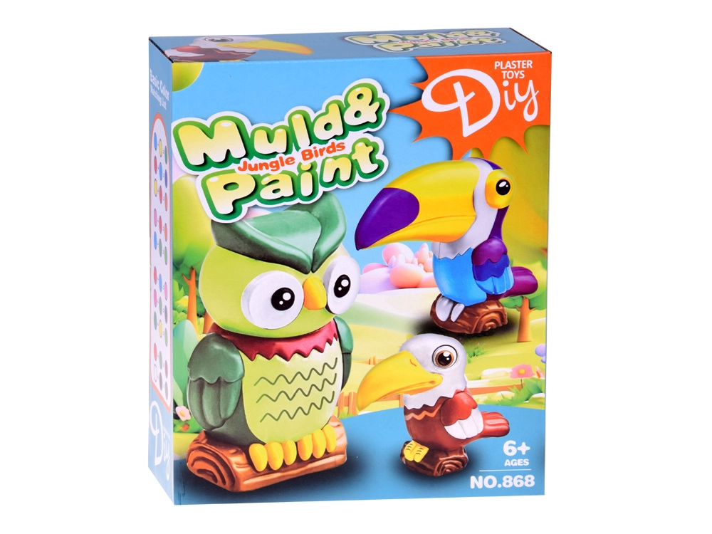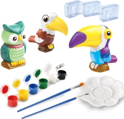 Ανακαλύψτε ένα διασκεδαστικό δημιουργικό σετ για παιδιά, με το οποίο θα φτιάξετε και θα διακοσμήσετε εύκολα τις δικές σας τρισδιάστατες φιγούρες εξωτικών πουλιών. Η συσκευασία περιλαμβάνει καλούπια, γύψο, χρώματα, πινέλα και παλέτα – απλώς προσθέστε νερό και ξεκινήστε να δημιουργείτε. Αυτή η δραστηριότητα αναπτύσσει τη λεπτή κινητικότητα, τη δημιουργικότητα και την υπομονή, με αποτέλεσμα πολύχρωμες κουκουβάγιες, τουκάν και άλλα τροπικά πουλιά ως όμορφη διακόσμηση για το δωμάτιο.