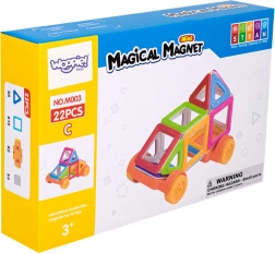 Η μαγνητική κατασκευή WOOPIE εισάγει τα παιδιά με παιγνιώδη τρόπο στις βασικές αρχές της γεωμετρίας και του μαγνητισμού. Τα διαφανή, ζωηρά χρωματιστά κομμάτια συνδέονται ομαλά μεταξύ τους και επιτρέπουν τη δημιουργία τρισδιάστατων σπιτιών, πύργων και κινούμενων οχημάτων. Χάρη στον ισχυρό μαγνητικό δεσμό οι κατασκευές είναι σταθερές, ενώ μπορούν να αναδιαμορφωθούν γρήγορα, καλλιεργώντας τη φαντασία.