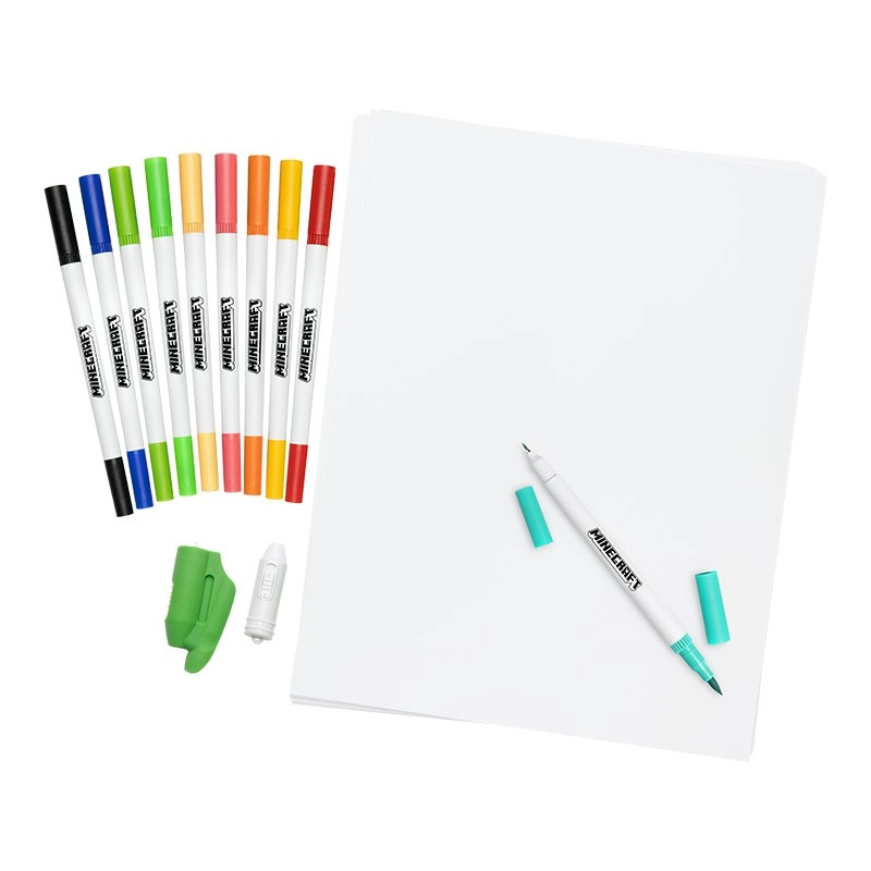 Το σετ περιλαμβάνει ελαφριούς διπλούς μαρκαδόρους με λεπτή και φαρδύτερη μύτη για ακριβείς γραμμές και ομαλό σκίασμα. Ιδανικοί για σκίτσα, αντιγραφή και χρωμάτισμα θεμάτων Minecraft.