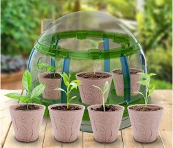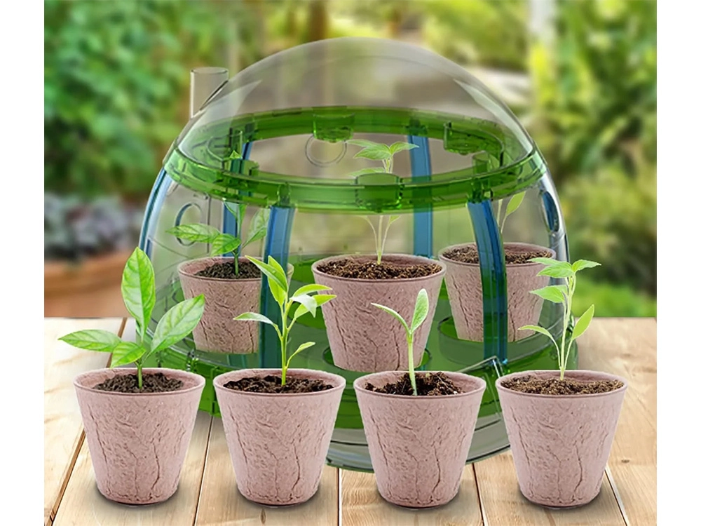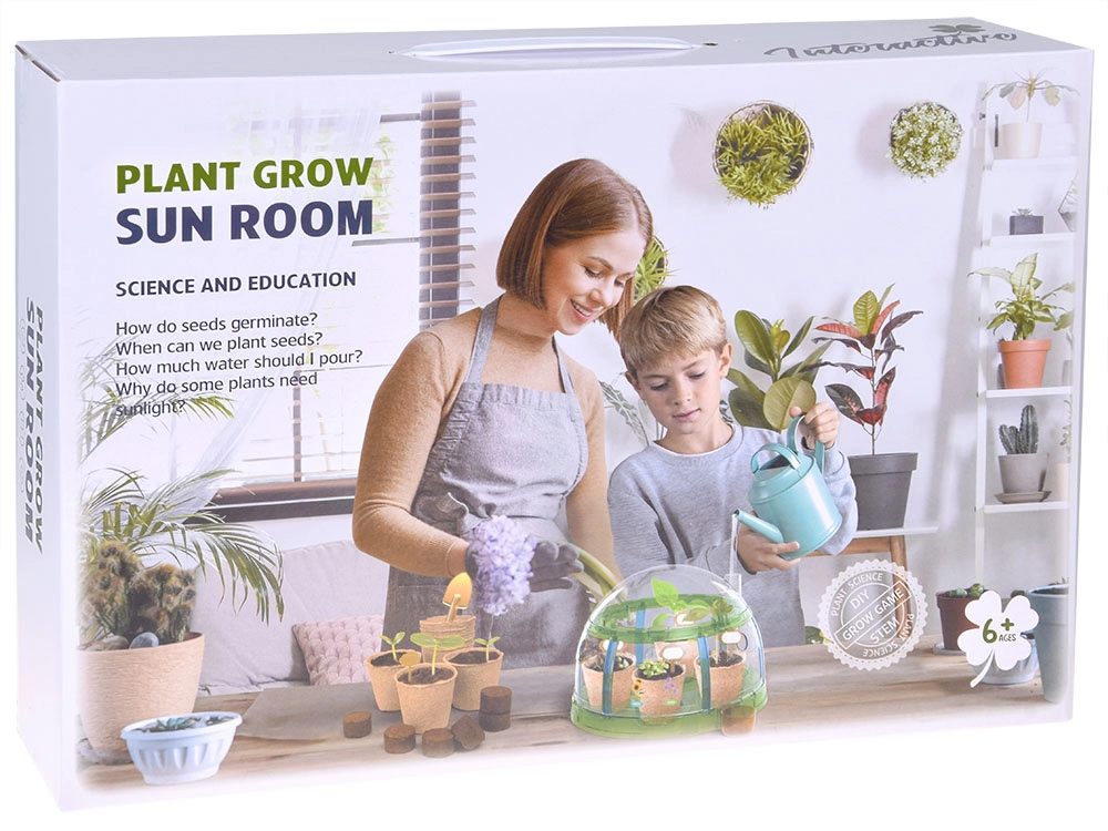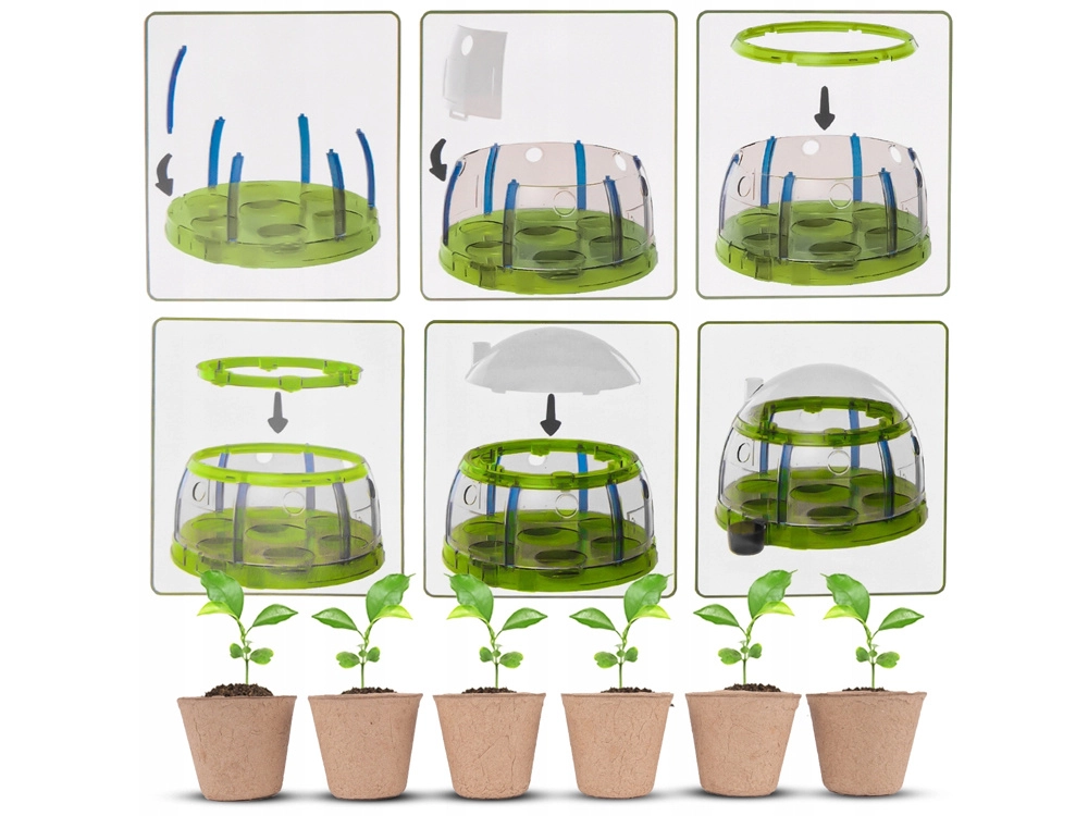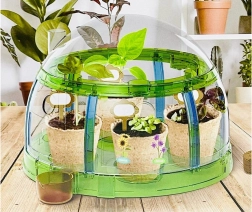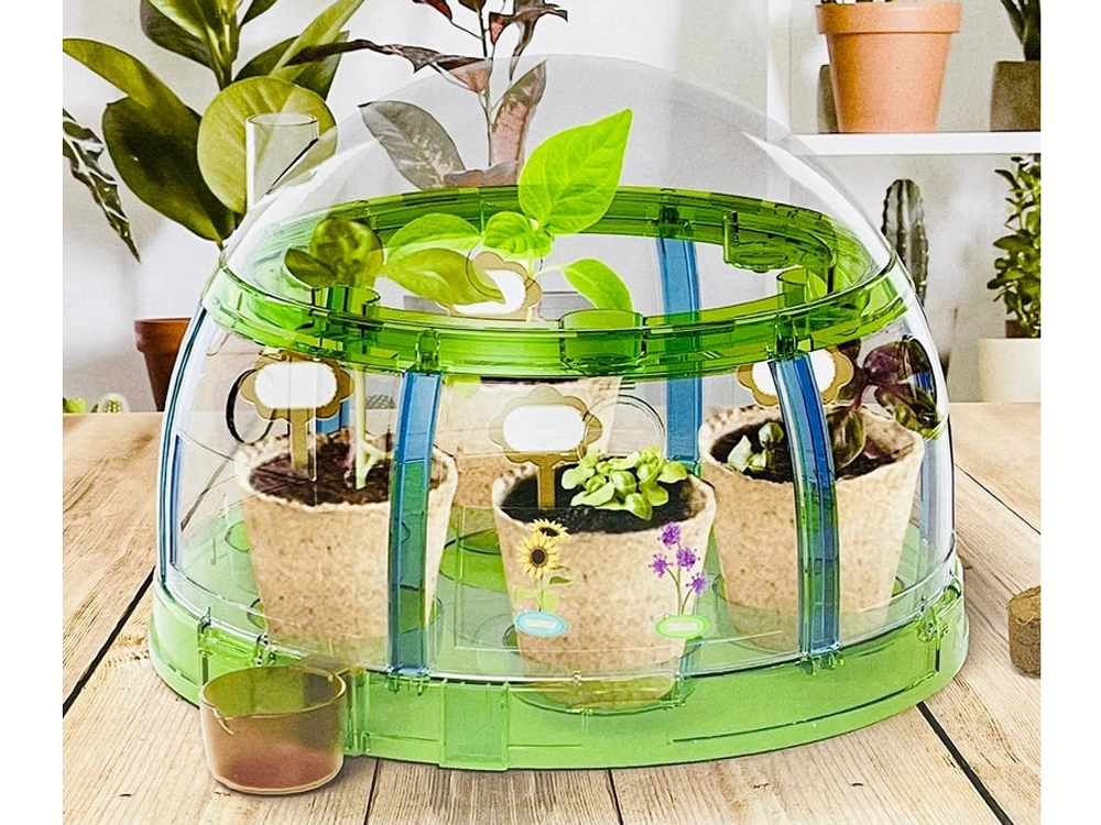 Δημιουργήστε έναν μικρό κήπο στο σπίτι και παρακολουθήστε την ανάπτυξη από τον σπόρο μέχρι το ώριμο φυτό. Διακοσμητικό μίνι θερμοκήπιο με ανοιγόμενη στέγη και πορτάκια για κάθε γλαστράκι, που προσφέρει ιδανικές συνθήκες για βλάστηση. Τις βιοδιασπώμενες γλάστρες μπορείτε να τις μεταφυτέψετε απευθείας στο χώμα – φιλικό προς τη φύση και χωρίς ακαταστασία.