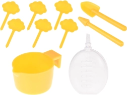 Το σετ είναι σχεδιασμένο για παιδιά από 6 ετών και συνδυάζει παιχνίδι και μάθηση. Αναπτύσσει συστηματικότητα, δημιουργικότητα και διδάσκει τις βάσεις της οικολογίας και της φροντίδας ζωντανών οργανισμών. Χρωματιστά αυτοκόλλητα και ετικέτες βοηθούν στην επισήμανση των φυτών, ώστε οι μικροί καλλιεργητές να έχουν τάξη στον κήπο τους.