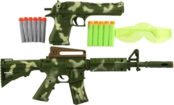 Αυτό το σετ για μικρούς σκοπευτές προσφέρει ό,τι χρειάζεται για ένα δυναμικό και ταυτόχρονα ασφαλές παιχνίδι. Η καραμπίνα είναι εξοπλισμένη με αποσπώμενο σκοπευτικό για πιο ακριβές σημάδι, το πιστόλι είναι κατάλληλο για γρήγορη δράση και τα αφρώδη βλήματα εξασφαλίζουν ασφαλή χρήση. Τα προστατευτικά γυαλιά περιλαμβάνονται στη συσκευασία για ακόμη μεγαλύτερη ασφάλεια στο παιχνίδι.