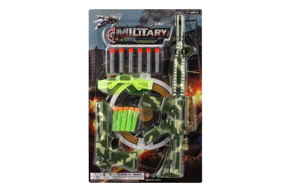 - Πλήρες σετ: καραμπίνα, πιστόλι, 11 αφρώδη βλήματα και προστατευτικά γυαλιά