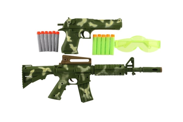 - Καραμπίνα, πιστόλι, 11 αφρώδη βλήματα, προστατευτικά γυαλιά