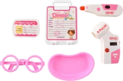 - Καροτσάκι, στηθοσκόπιο, ωτοσκόπιο, παλμικό μετρητή, θερμόμετρο, καθρεφτάκι, νευρολογικό σφυράκι, σύριγγα, ψαλίδι, ψαλίδι ασφαλείας/τσιμπίδα, οφθαλμικές σταγόνες, σαπούνι σε σωληνάριο, μπολ, νυστέρι (παιχνίδι), γυαλιά χωρίς φακούς, μπουκαλάκι, ταυτότητα, πλαστικό μπλοκάκι σημειώσεων, “έγχυση”, οδηγίες, έγχρωμη συσκευασία, κουτί μεταφοράς