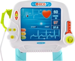 Μεγάλος πίνακας με προσομοίωση ΗΚΓ και κουμπιά, μαζί με θερμόμετρο και παλμικό οξύμετρο, προσδίδει ρεαλισμό στο παιχνίδι χάρη στα φωτεινά και ηχητικά εφέ.