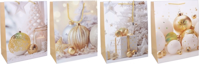 Στυλάτη χριστουγεννιάτικη σακούλα δώρου μεγέθους S που θα χαροποιήσει κάθε παραλήπτη. Χάρη στις διαστάσεις 18 × 23 × 10 cm είναι ιδανική για μικρότερα δώρα, καλλυντικά ή μικρές διακοσμήσεις. Προσφέρει ποιοτική κατασκευή, ανθεκτική λαβή για άνετη μεταφορά και γιορτινό σχεδιασμό σε 4 εκδοχές.