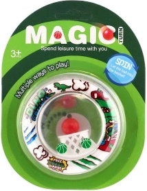 Η διάμετρος 8 εκ. το κάνει ιδανική διασκέδαση τσέπης – για το αυτοκίνητο, την αίθουσα αναμονής ή τις εκδρομές. Το παιχνίδι είναι κατασκευασμένο από ελαφρύ πλαστικό και διατίθεται σε κάρτα 12 × 16 εκ. σε διάφορα χρωματικά και θεματικά μοτίβα (π.χ. αθλητικά ή με δεινόσαυρους) που εντυπωσιάζουν τα παιδιά.