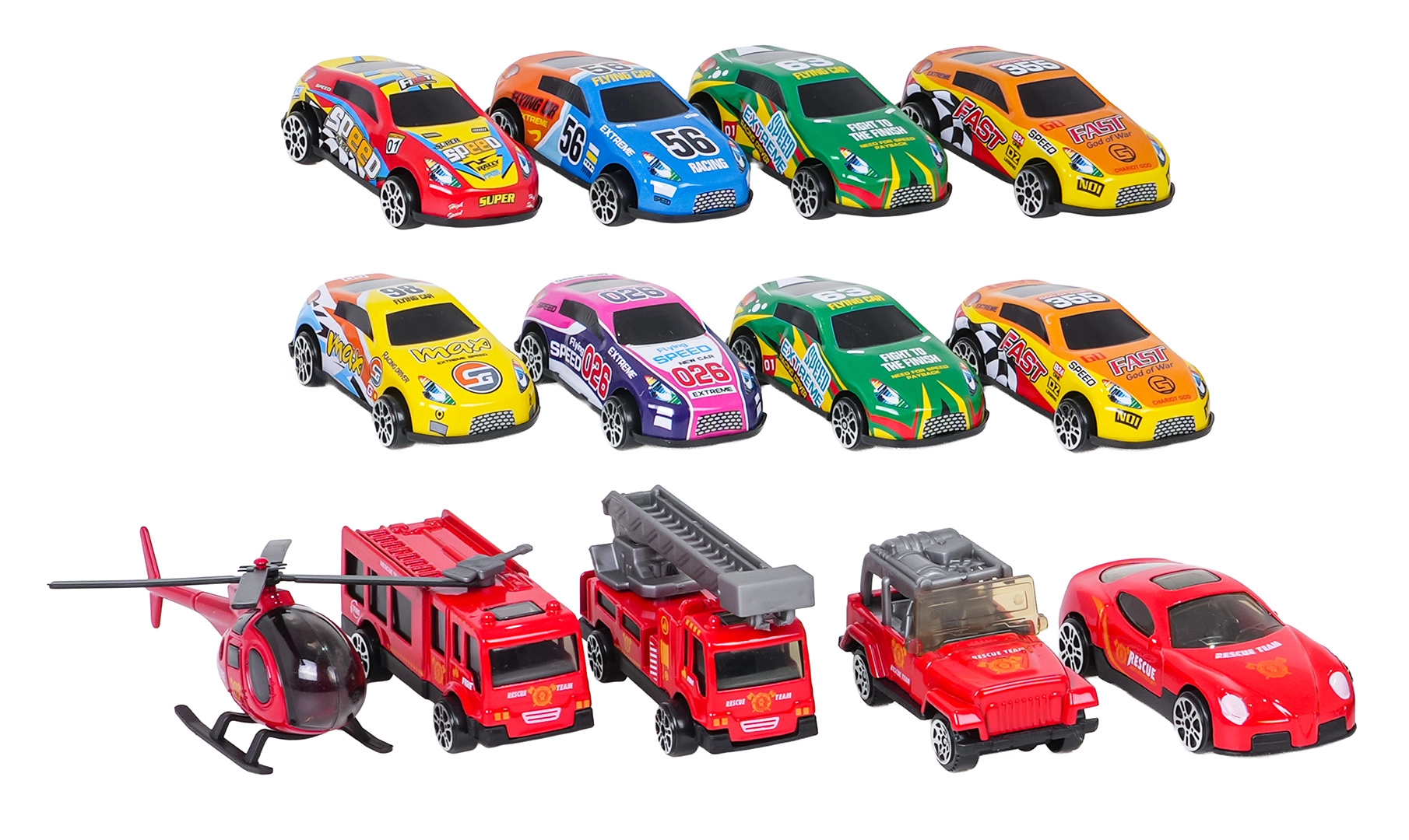 - Πλούσιος εξοπλισμός: 12 αυτοκινητάκια + ελικόπτερο, σήμανση και αυτοκόλλητα