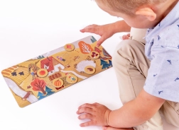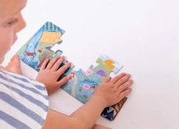 Έξτρα μεγάλα κομμάτια παζλ από FSC χαρτόνι 2 mm, κρατιούνται καλά, συναρμολογούνται εύκολα και αντέχουν στο καθημερινό παιχνίδι, χωρίς πλαστικό.