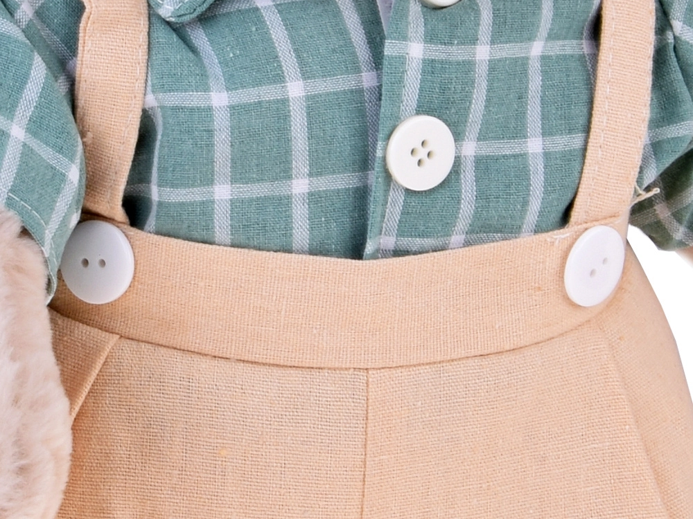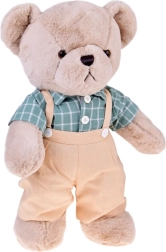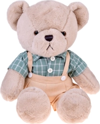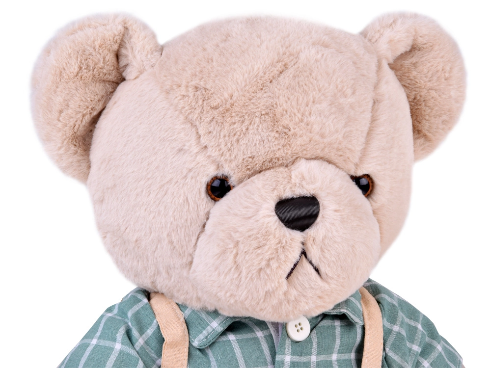 Το χαριτωμένο λούτρινο αρκουδάκι Franek είναι ένας μεγάλος σύντροφος αγκαλιάς 58 cm σε κομψό vintage στυλ. Έχει πολύ μαλακή μπεζ γούνα, φοράει πράσινο καρό πουκάμισο και μπεζ τιράντες με σορτσάκι. Τα ρούχα μπορούν να αφαιρούνται εύκολα χάρη στα αυτοκόλλητα κλεισίματα (Velcro), ώστε το αρκουδάκι να διατηρείται εύκολα καθαρό. Ιδανικό ως δώρο για παιδιά και ενήλικες και όμορφη διακόσμηση για το παιδικό δωμάτιο.
