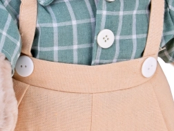 Το αρκουδάκι Franek συνδυάζει απαλότητα και διαχρονικό σχεδιασμό. Το απαλό λούτρινο υλικό του καλεί σε αγκαλιά, ενώ τα διακριτικά κεντημένα χαρακτηριστικά δημιουργούν ένα γλυκό, ουδέτερο ύφος. Το στυλάτο πράσινο πουκάμισο με λευκό καρό και το ανοιχτόχρωμο σορτσάκι με τιράντες χαρίζουν ζεστή ατμόσφαιρα σε κάθε δωμάτιο.