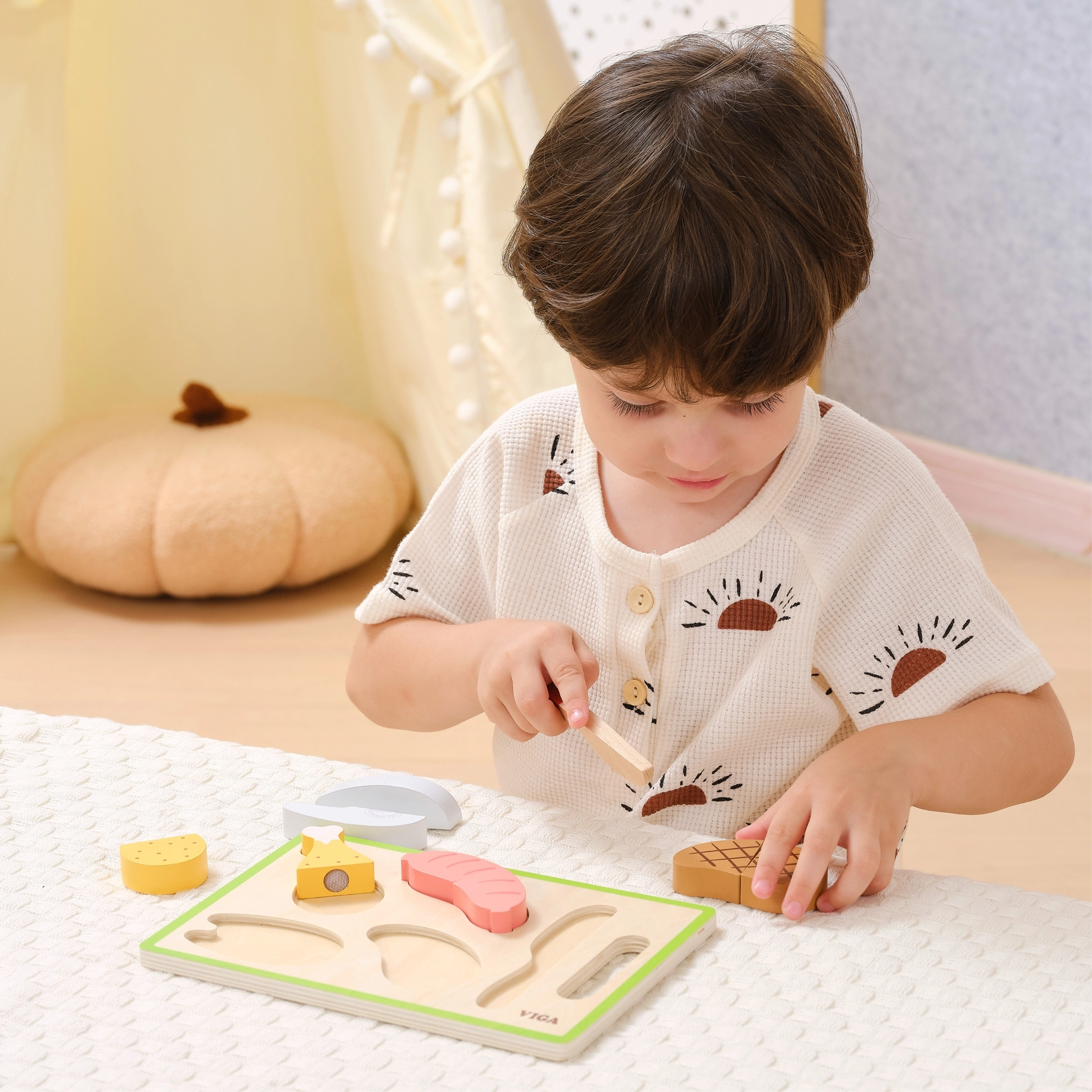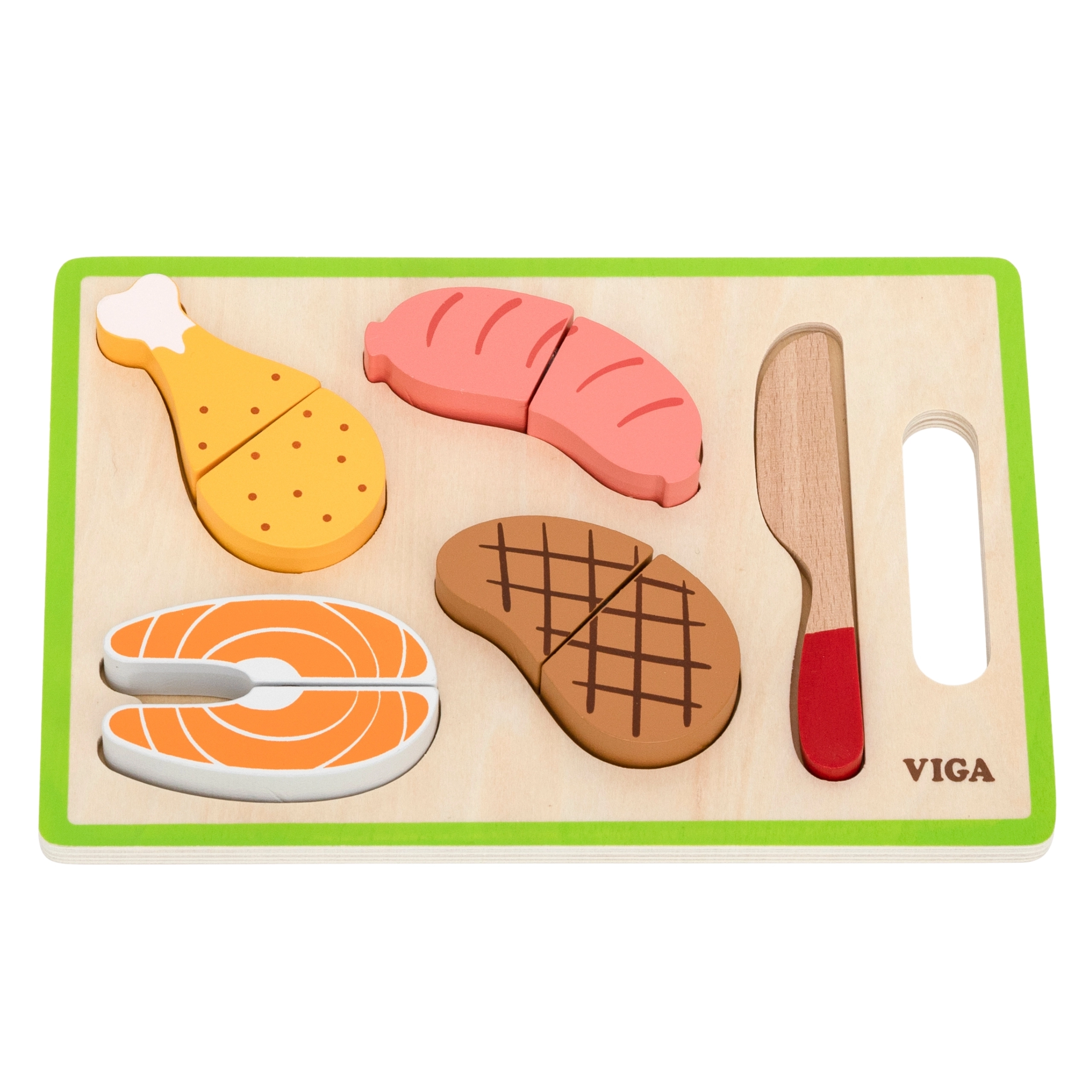 Ανακαλύψτε δημιουργικό παιχνίδι για την παιδική κουζίνα – το ξύλινο σετ κοπής κρέατος VIGA. Χάρη στα κομμάτια που ενώνονται με βέλκρο, τα τρόφιμα μπορούν να “κόβονται” και να συναρμολογούνται ξανά και ξανά, ενισχύοντας τη λεπτή κινητικότητα, τον συντονισμό ματιού–χεριού και το δημιουργικό role‑play. Το σετ είναι ιδανικό συμπλήρωμα για παιδικές κουζίνες, έχει ρεαλιστική εμφάνιση και είναι κατάλληλο από 18 μηνών.