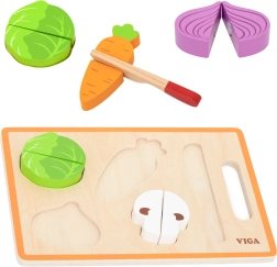 Ανακαλύψτε το διασκεδαστικό μοντεσσόρι παιχνίδι από τη VIGA: ξύλινο σετ λαχανικών για κόψιμο με σανιδάκι και μαχαιράκι. Χάρη στα κουμπώματα με σκρατς δημιουργούν κατά το «κόψιμο» ρεαλιστικό ήχο, αναπτύσσουν τη λεπτή κινητικότητα, τον συντονισμό χεριού–ματιού και την δημιουργική παιχνιδόκουζινα. Ιδανικό συμπλήρωμα για την παιδική κουζίνα και για κοινό οικογενειακό παιχνίδι.