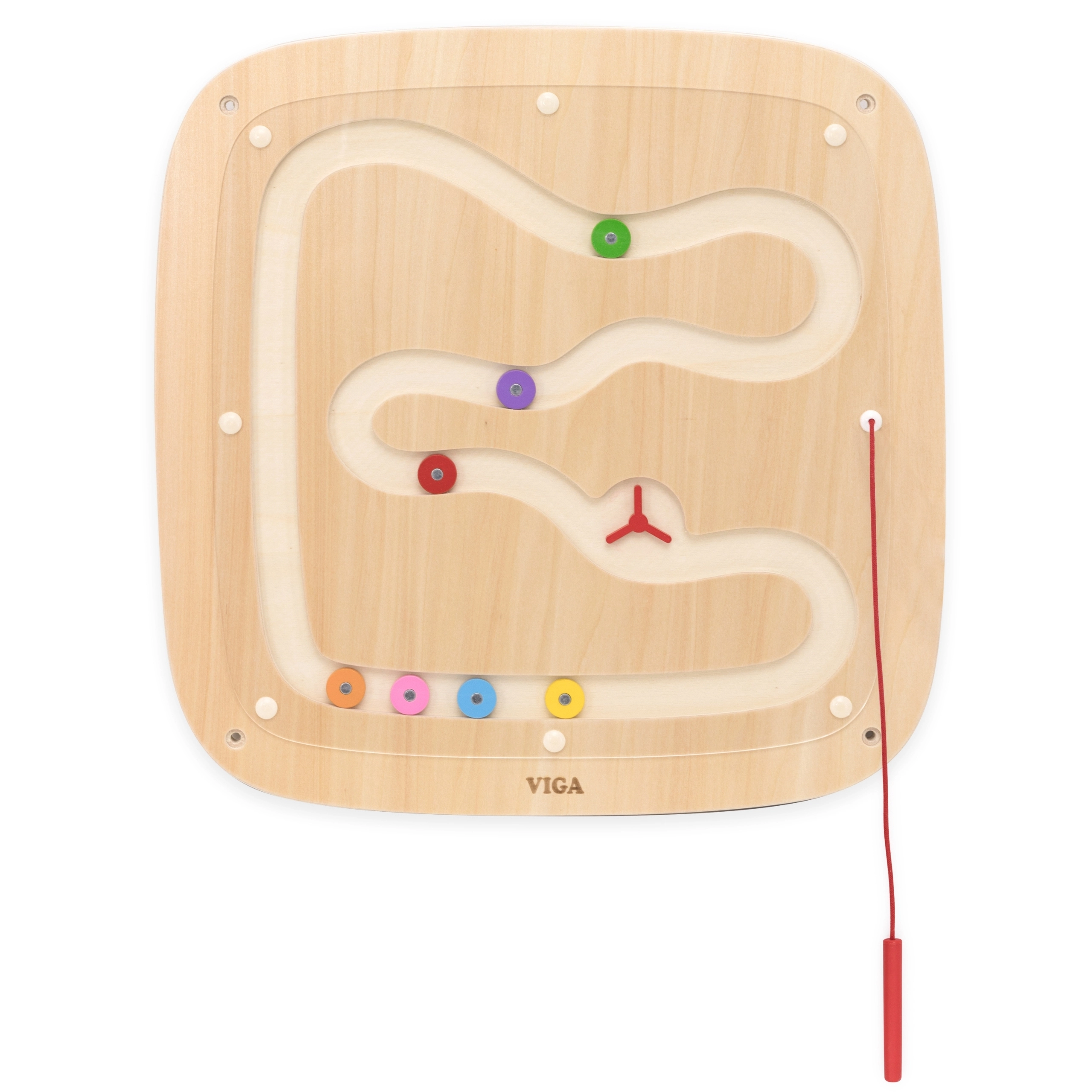 Αυτή η επιτοίχια μαγνητική πινακίδα VIGA είναι ιδανική για παιδικά δωμάτια, νηπιαγωγεία και χώρους παιχνιδιού. Οι δύο διαφορετικές διαδρομές – μία ευθεία και μία καμπύλη – δείχνουν στα παιδιά με παραστατικό τρόπο πώς η βαρύτητα επηρεάζει την ταχύτητα και την τροχιά της κίνησης. Το συνημμένο μαγνητικό στυλό με κορδόνι καθοδηγεί με ασφάλεια τους χρωματιστούς δίσκους κάτω από το διάφανο κάλυμμα.