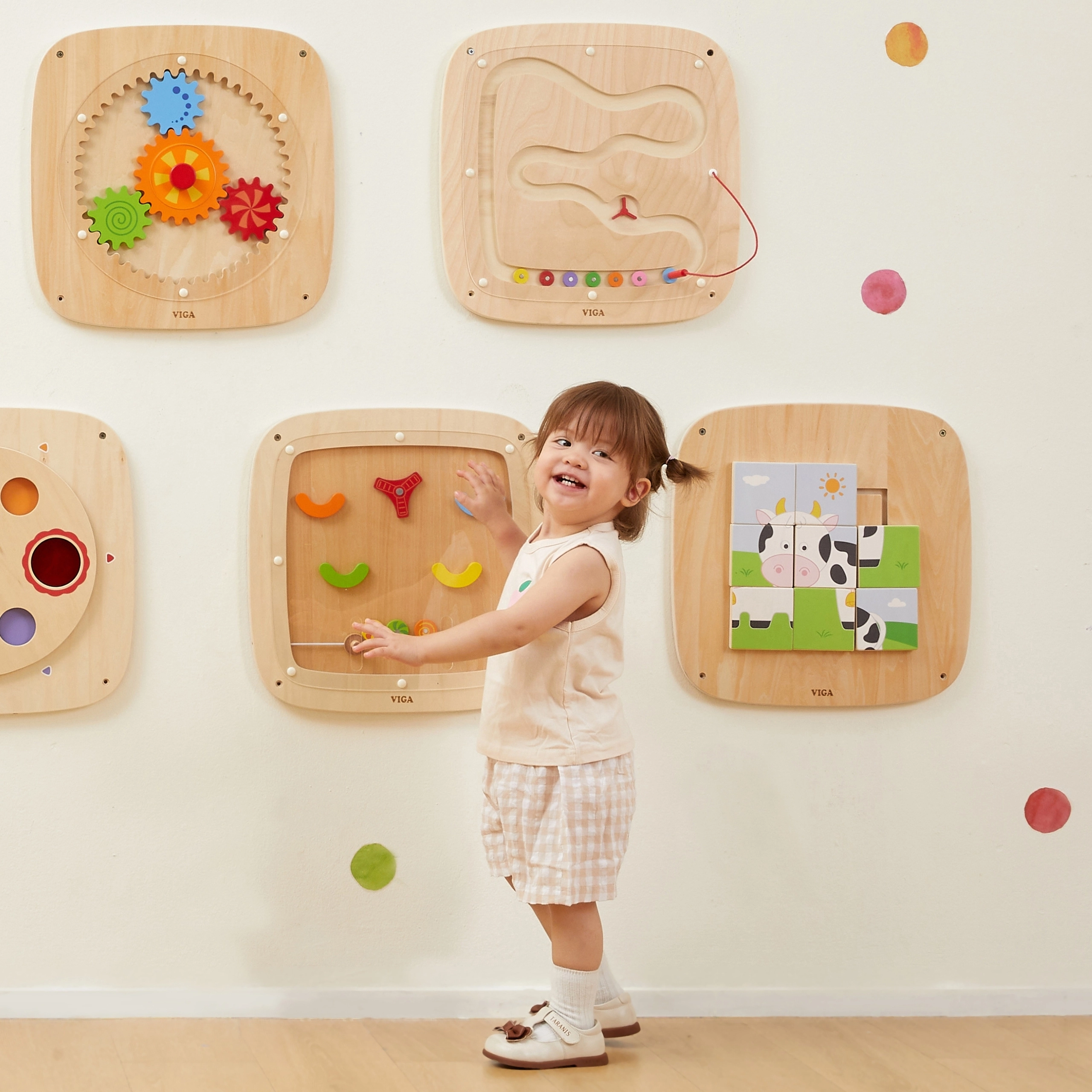Ανακαλύψτε τη μαγεία της βαρύτητας με αυτήν τη διαδραστική ξύλινη πινακίδα VIGA! Με το δεμένο μαγνητικό στυλό, τα παιδιά μετακινούν χρωματιστούς δίσκους σε δύο διαφορετικές διαδρομές και παρατηρούν πώς αλλάζουν η ταχύτητα και η κατεύθυνση. Η πινακίδα είναι ανθεκτική, ασφαλής και τοποθετείται στον τοίχο, εξοικονομώντας χώρο και παράλληλα αναπτύσσοντας λεπτή κινητικότητα, συντονισμό χεριού–ματιού και λογική σκέψη.