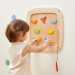 Αυτός ο επιτοίχιος ξύλινος πίνακας είναι ιδανικός για παιδικά δωμάτια, παιδότοπους και νηπιαγωγεία – η τοποθέτηση στον τοίχο εξοικονομεί χώρο και εξασφαλίζει ασφαλές, σταθερό παιχνίδι. Τα παιδιά με τη βοήθεια του μαγνητικού στυλό ελέγχουν την κατεύθυνση των μπιλιών, ξεπερνούν εμπόδια και στοχεύουν σε ζώνες με βαθμολογία, ενισχύοντας φυσικά την υπομονή, την συγκέντρωση και τον συντονισμό.