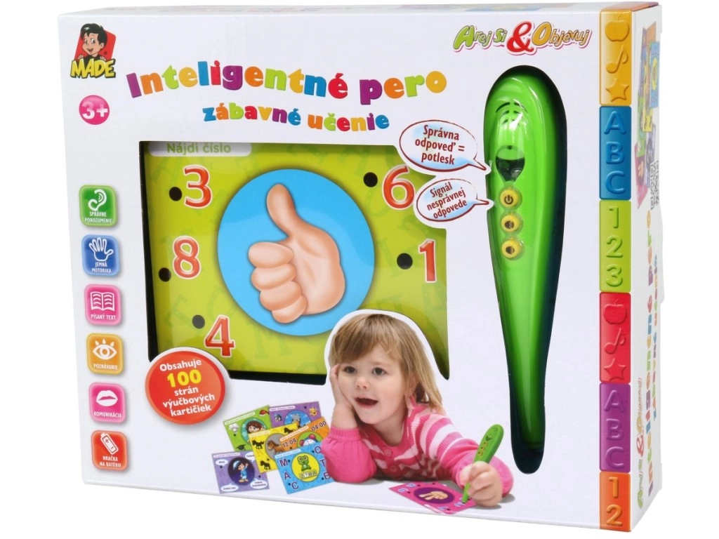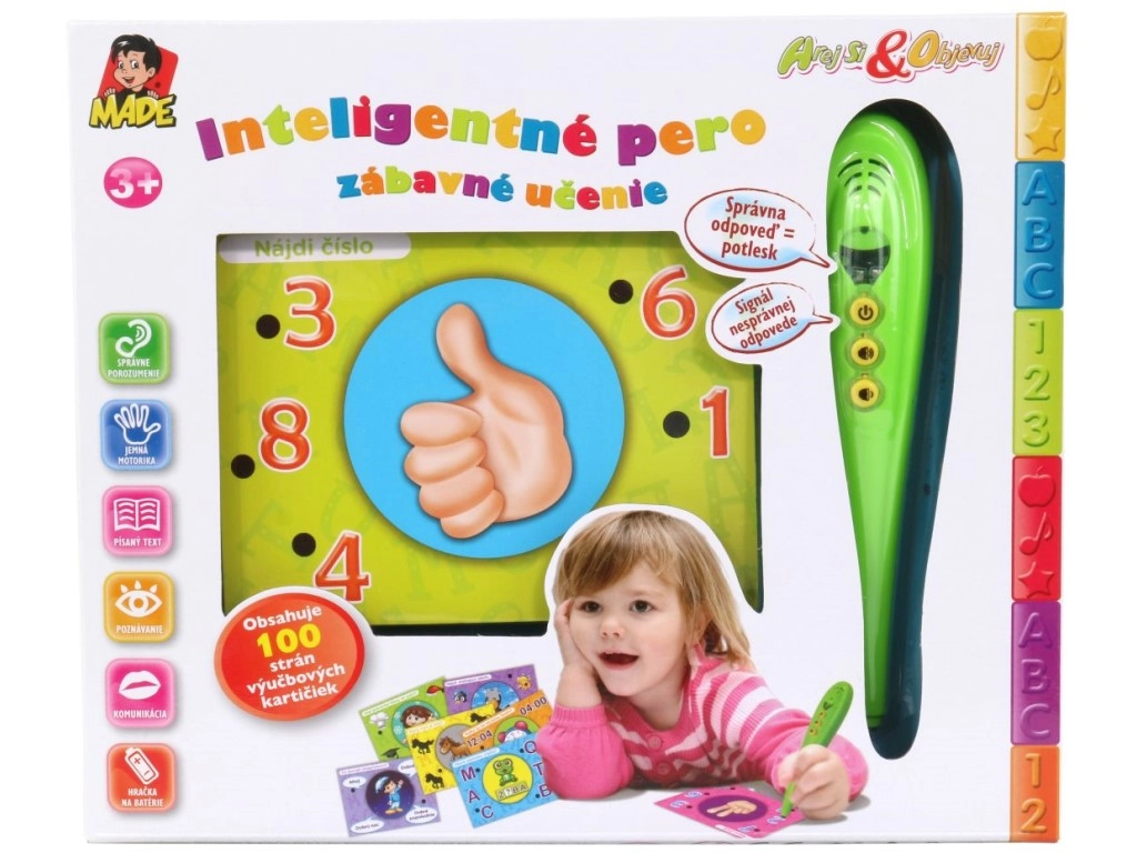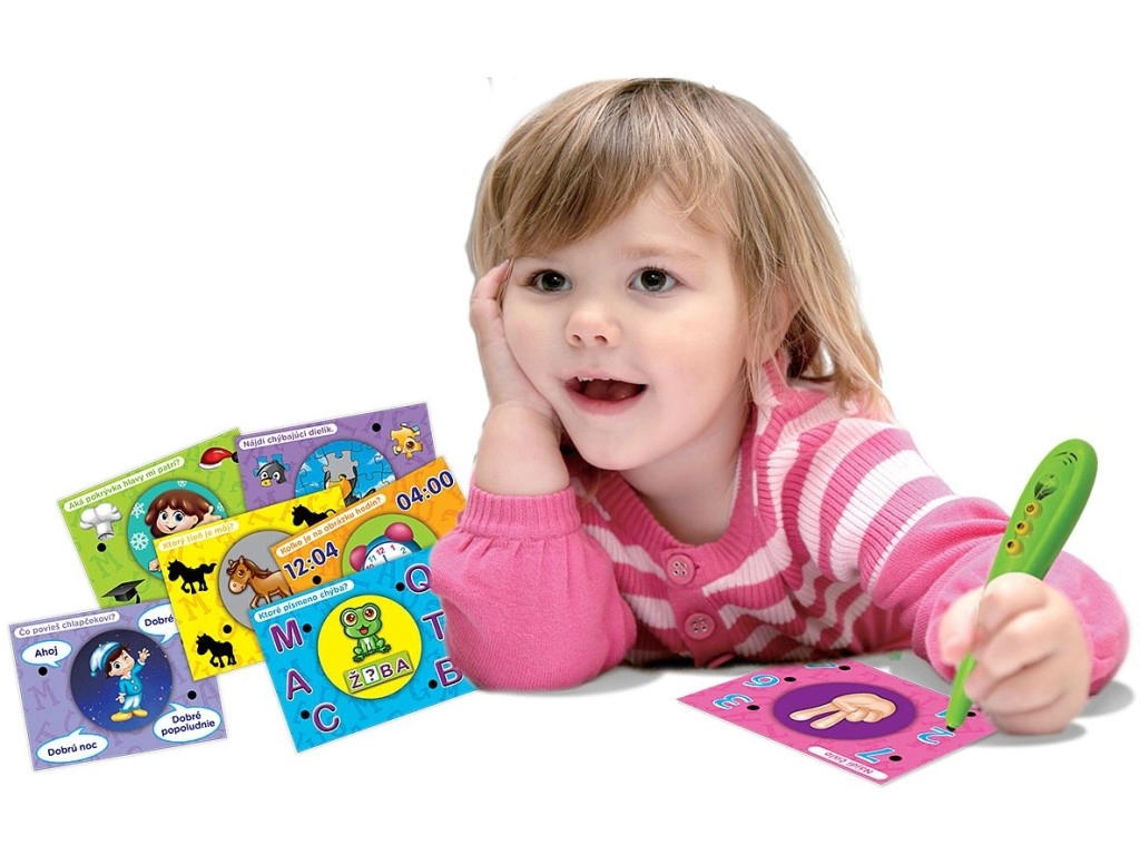 Ανακαλύψτε τη διασκεδαστική μάθηση με ένα σετ που συνδυάζει ένα έξυπνο διαδραστικό στυλό και πολύχρωμες εκπαιδευτικές κάρτες στα σλοβακικά. Τα παιδιά απαντούν αγγίζοντας με το στυλό την επιλεγμένη απάντηση – πράσινο φωτάκι σημαίνει σωστό, κόκκινο λάθος. Περιλαμβάνει ρύθμιση έντασης, συμπαγείς διαστάσεις και εύκολο χειρισμό για προσχολικά και σχολικής ηλικίας παιδιά.