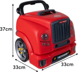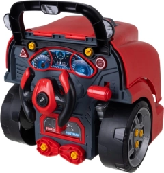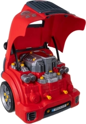 Πλήρες μηχανικό εργαστήριο για παιδιά από 3 ετών με κόκκινο αυτοκίνητο, ανοιγόμενο καπό, λεπτομερή “κινητήρα”, χειριστήρια και παιδικά εργαλεία. Χάρη στις βίδες, τροχούς και κινητά μέρη τα παιδιά εξασκούν τον συντονισμό και κατανοούν τις βασικές αρχές λειτουργίας του οχήματος σε ασφαλές και διασκεδαστικό περιβάλλον.