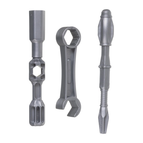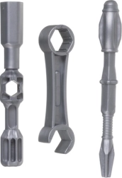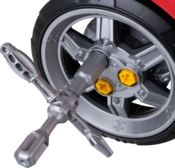 Περιλαμβάνονται ασφαλή πλαστικά εργαλεία – κατσαβίδι, κλειδιά και καρυδάκια. Ιδανικά για εξάσκηση λαβής, συντονισμού και αυτονομίας σε συναρμολόγηση και αποσυναρμολόγηση.