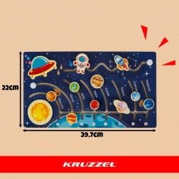 Ανακαλύψτε το σύμπαν με παιχνιδιάρικο τρόπο με το ξύλινο μοντεσσόρι παζλ «Ηλιακό σύστημα» από τη μάρκα KRUZZEL. Ένας διαδραστικός λαβύρινθος πλανητών με πύραυλο που ενισχύει τη λεπτή κινητικότητα, τη λογική σκέψη και τη γνωριμία με τους πλανήτες. Ποιοτικό πεύκι, λείες άκρες και ανθεκτική κατασκευή εξασφαλίζουν ασφαλές και διασκεδαστικό παιχνίδι για τα παιδιά.