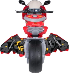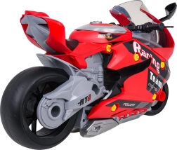 Η μοτοσικλέτα είναι κατασκευασμένη από ποιοτικά, ανθεκτικά υλικά, διαθέτει άνετη χειρολαβή για μεταφορά, μεγάλους τροχούς και ρεαλιστικές λεπτομέρειες αμαξώματος. Τα εφέ περιλαμβάνουν μπροστινούς προβολείς, πίσω φώτα, ήχους κινητήρα και ένα μοναδικό εφέ καπνού από την εξάτμιση μετά την προσθήκη νερού. Ιδανικό ως δώρο για περίεργα παιδιά.